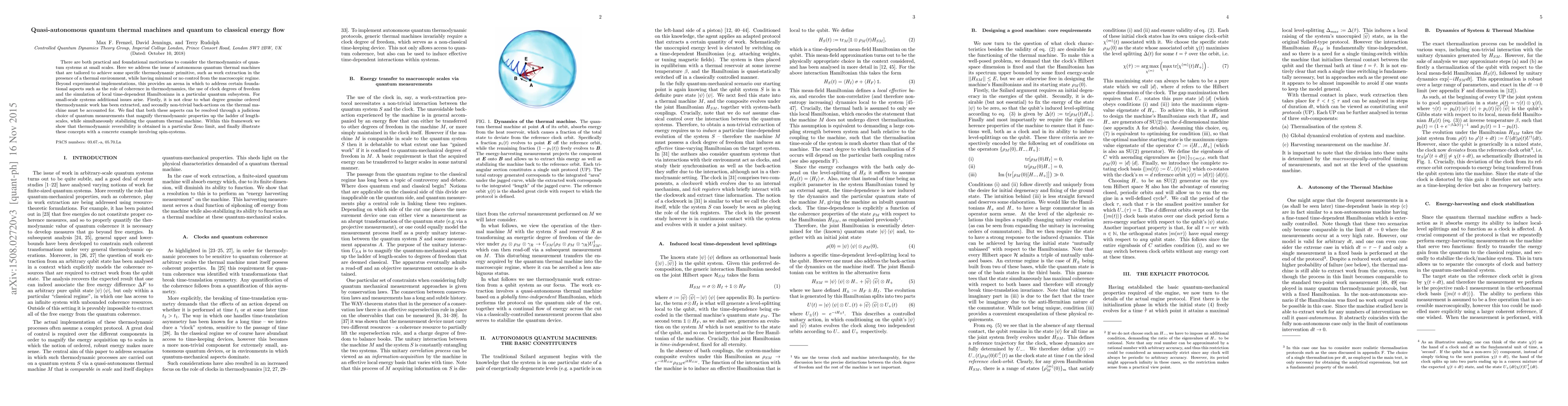 This paper explores the thermodynamics of quasi-autonomous quantum thermal machines, focusing on extracting work from thermal environments with minimal macroscopic control. It investigates the role of coherence and quantum measurements in achieving thermodynamic reversibility and demonstrates the concepts with a spin-system example.