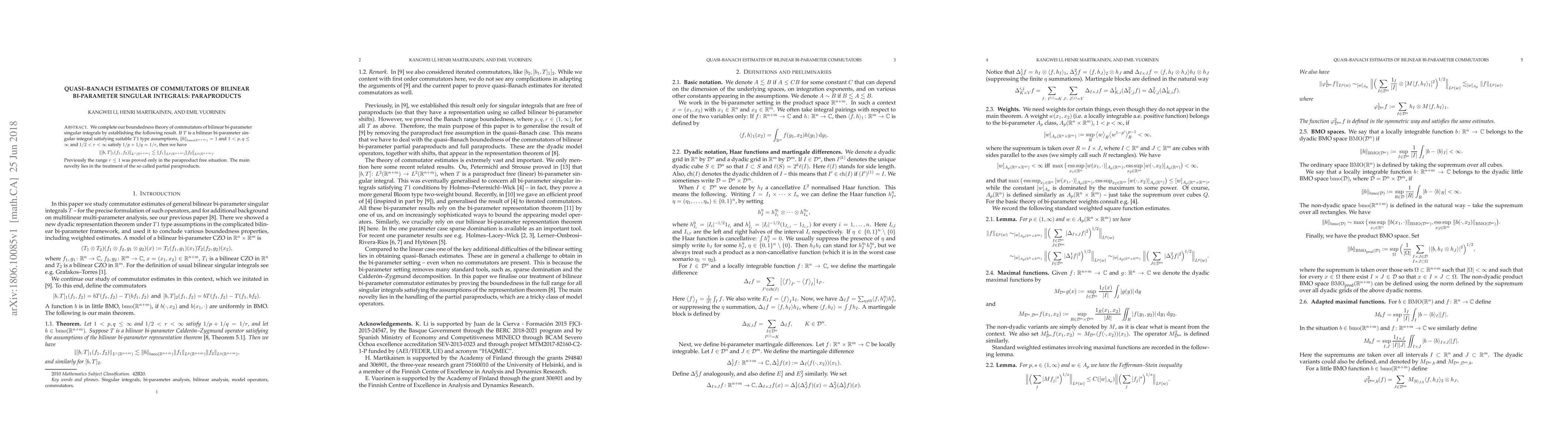 We complete our boundedness theory of commutators of bilinear bi-parameter singular integrals by establishing the following result. If $T$ is a bilinear bi-parameter singular integral satisfying suitable $T1$ type assumptions, $\|b\|_{\operatorname{bmo}(\mathbb{R}^{n+m})} = 1$ and $1 < p, q \le \infty$ and $1/2 < r < \infty$ satisfy $1/p+1/q = 1/r$, then we have $$ \|[b, T]_1(f_1, f_2)\|_{L^r(\mathbb{R}^{n+m})} \lesssim \|f_1\|_{L^p(\mathbb{R}^{n+m})} \|f_2\|_{L^q(\mathbb{R}^{n+m})}. $$ Previously the range $r \le 1$ was proved only in the paraproduct free situation. The main novelty lies in the treatment of the so called partial paraproducts.