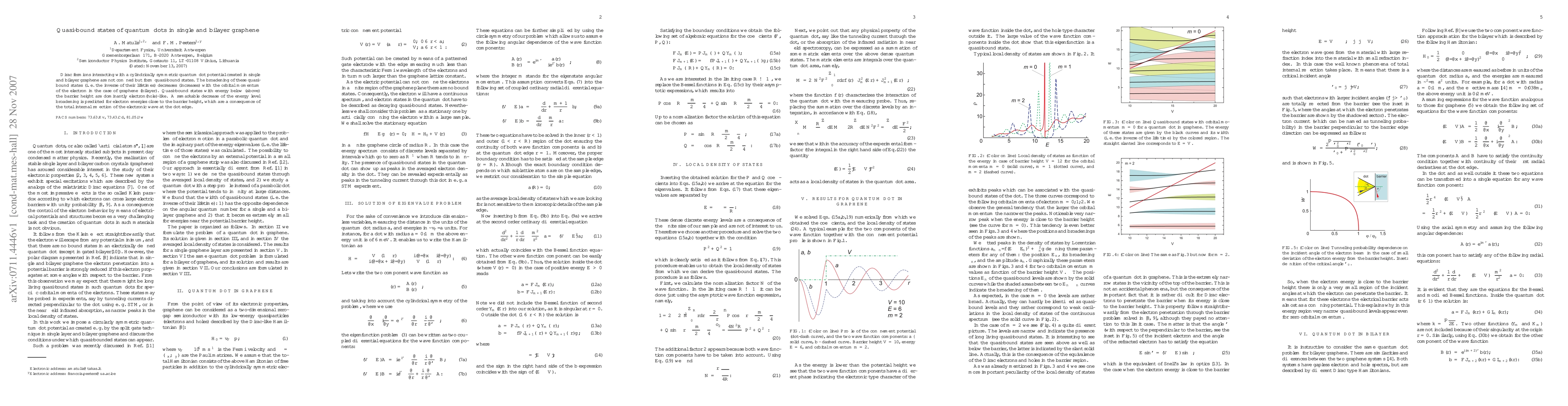 This paper investigates quasi-bound states in single and bilayer graphene influenced by a cylindrical quantum dot potential. It finds that these states broaden inversely with electron orbital momentum, with notable reductions in broadening near the barrier height due to total internal reflection effects.