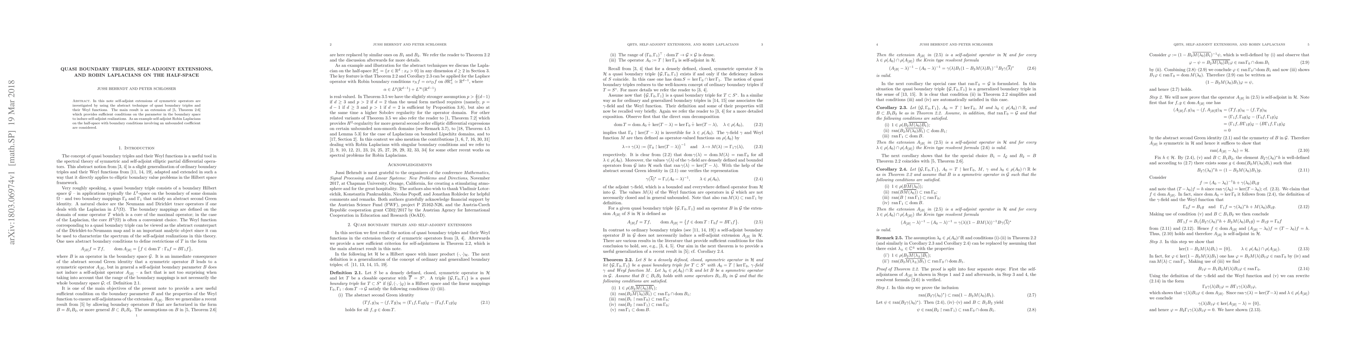 This paper investigates self-adjoint extensions of symmetric operators via quasi boundary triples, extending Theorem 2.6 with conditions for self-adjoint realizations. An example includes self-adjoint Robin Laplacians on a half-space with boundary conditions featuring an unbounded coefficient.