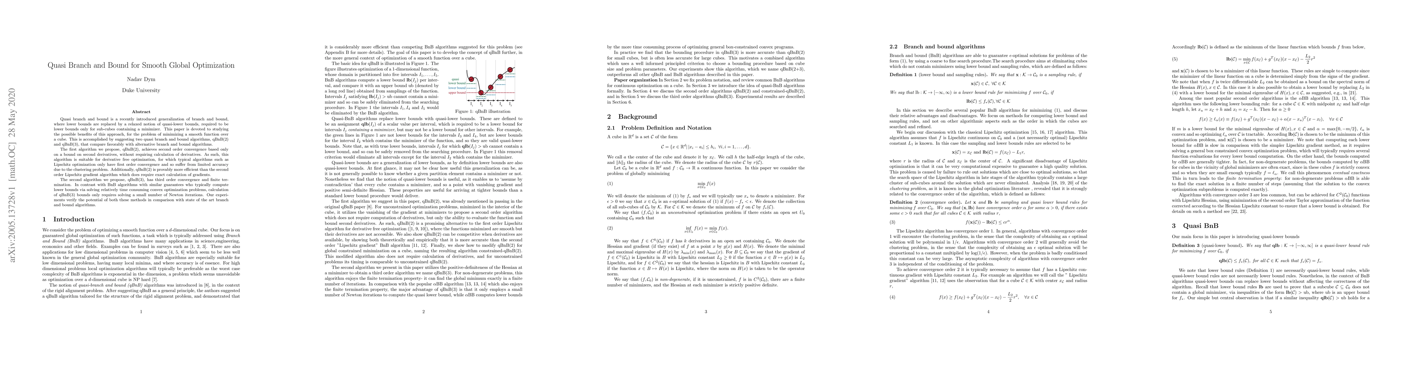 Two quasi branch and bound algorithms improve upon traditional methods for smooth global optimization by achieving second and third order convergence with reduced computational requirements.