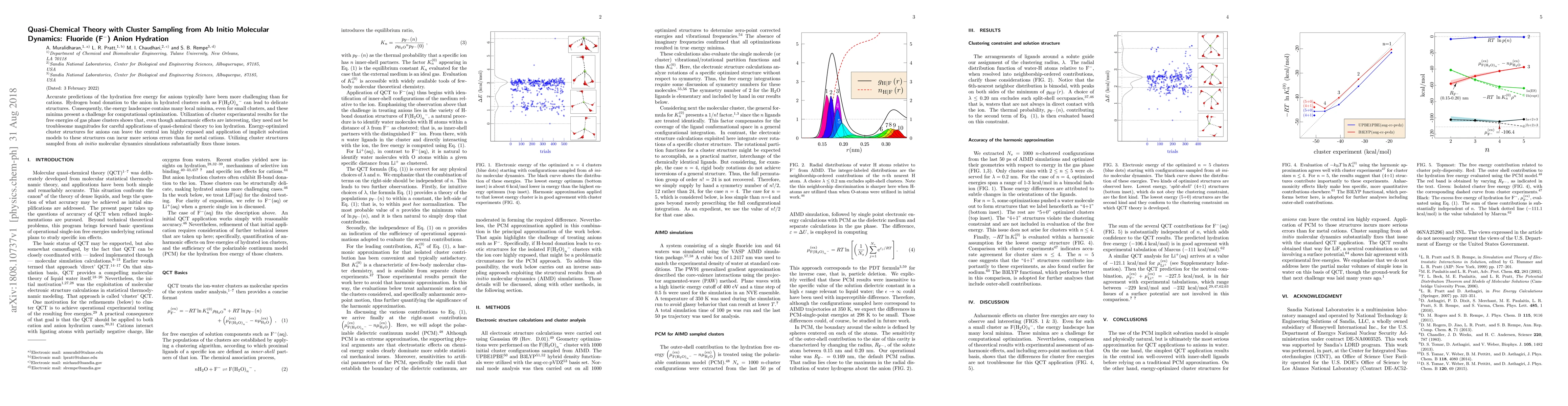 This paper proposes a quasi-chemical theory approach enhanced by cluster sampling from ab initio molecular dynamics to accurately predict the hydration free energy of fluoride anions. The method addresses the challenges posed by the complex energy landscape of hydrated clusters, leading to improved accuracy over implicit solvation models.