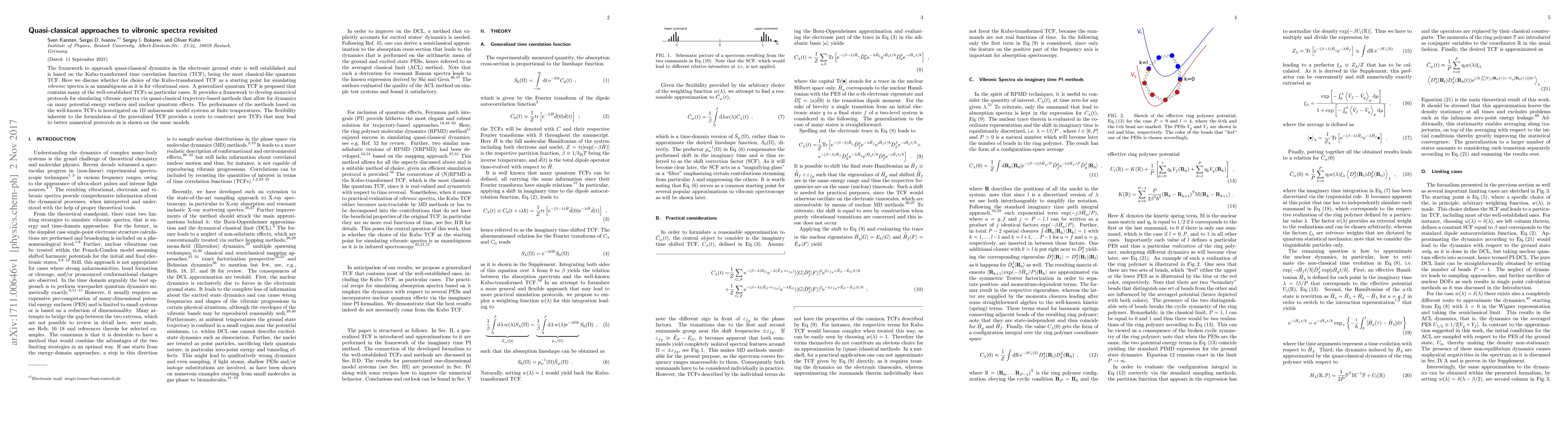 This paper revisits quasi-classical approaches to simulating vibronic spectra, proposing a generalized quantum time correlation function (TCF) that encompasses existing methods. It evaluates the performance of these methods on 1D anharmonic model systems and demonstrates the potential for improved numerical protocols through the flexibility of the new TCF formulation.