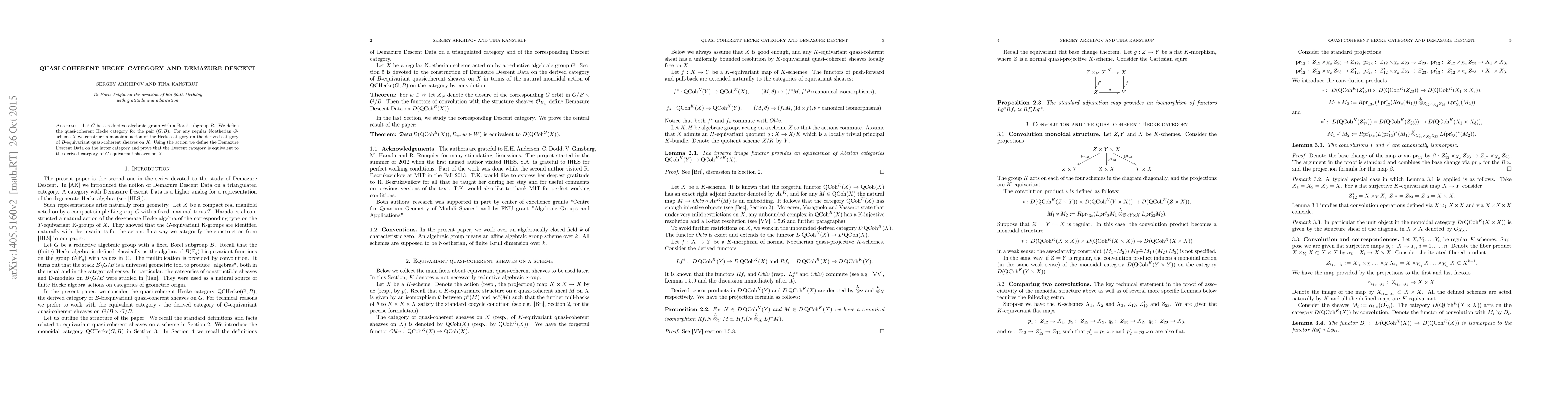 The paper introduces the quasi-coherent Hecke category and demonstrates its action on derived categories of equivariant sheaves, along with the Demazure Descent Data definition.