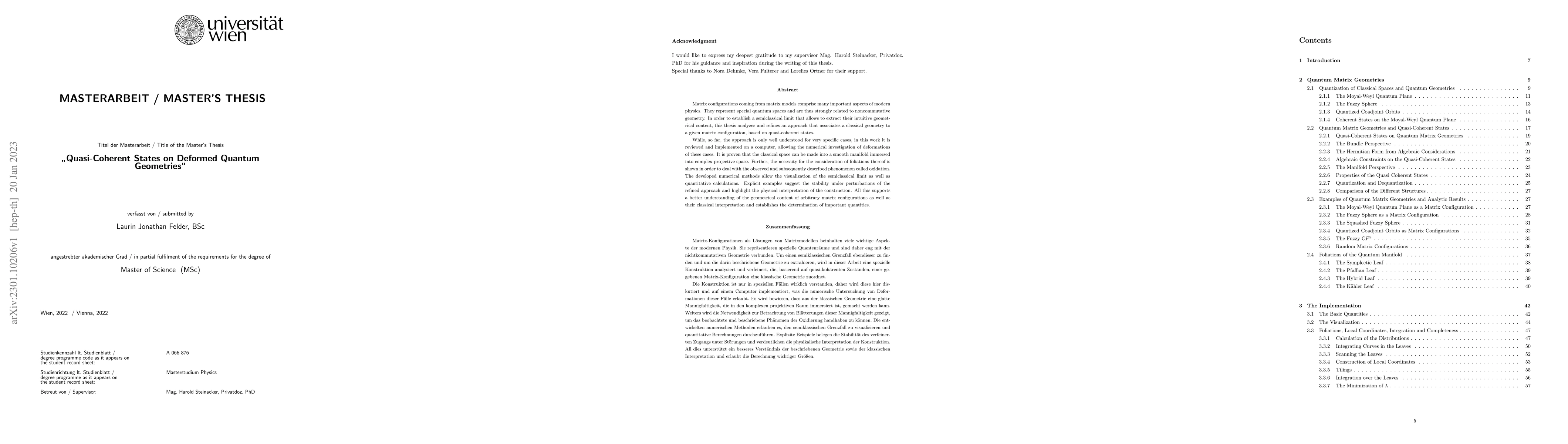 This paper develops a refined approach to associate classical geometries with matrix configurations from matrix models, using quasi-coherent states. It introduces numerical methods for investigating deformations and demonstrates the stability of the approach, supporting a deeper understanding of the geometrical content of quantum spaces.