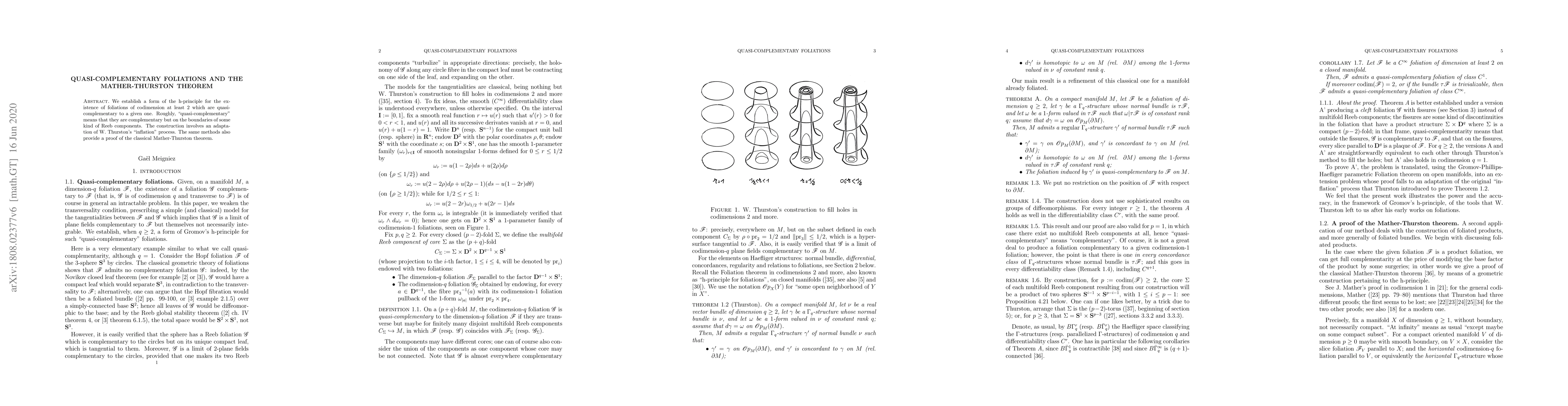 We establish a form of the h-principle for the existence of foliations quasi-complementary to a given one; the same methods also provide a proof of the classical Mather-Thurston theorem.