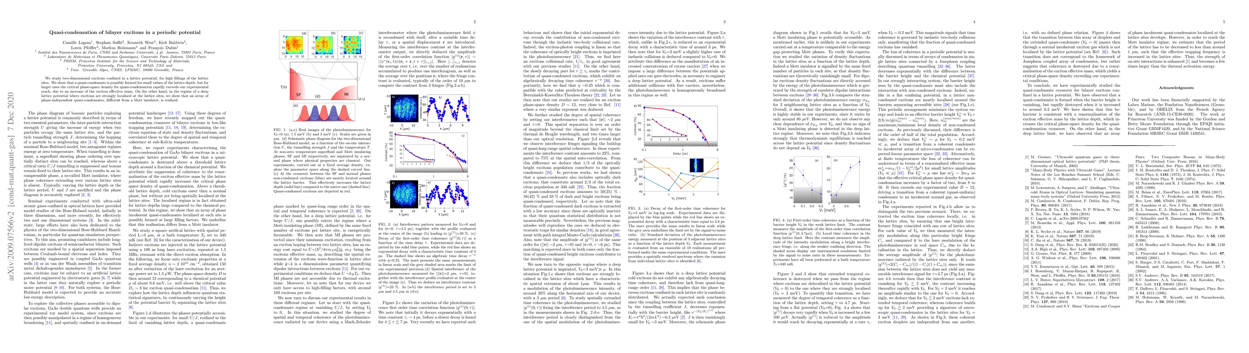 We study two-dimensional excitons confined in a lattice potential, for high fillings of the lattice sites. We show that a quasi-condensate is possibly formed for small values of the lattice depth, but for larger ones the critical phase-space density for quasi-condensation rapidly exceeds our experimental reach, due to the increase of the excitons effective mass. On the other hand, in the regime of a deep lattice potential where excitons are strongly localised at the lattice sites, we show that an array of phase-independent quasi-condensates, different from a Mott insulating phase, is realised.