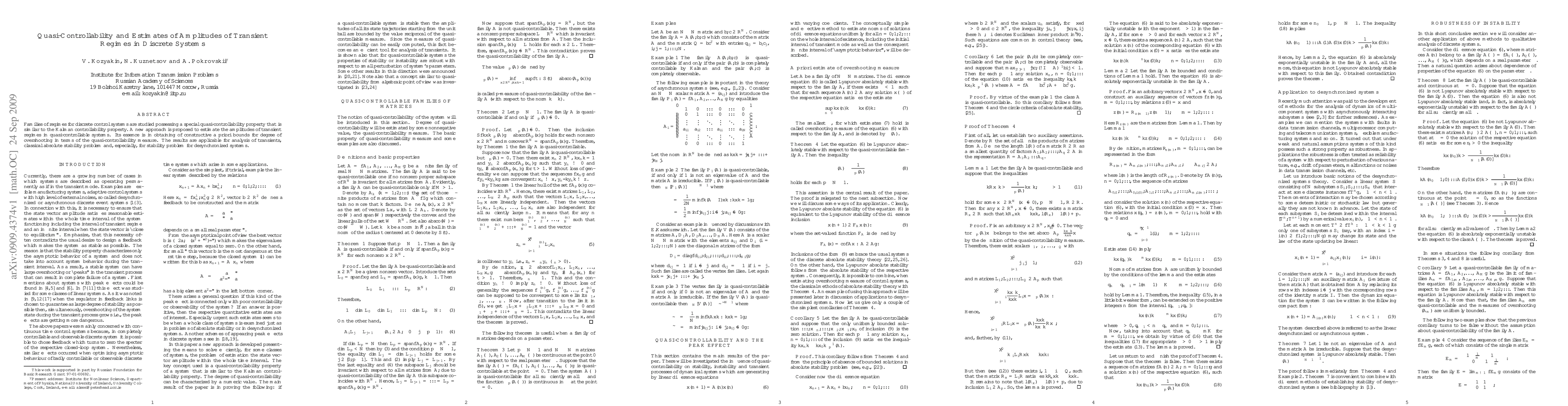 Families of regimes for discrete control systems are studied possessing a special quasi-controllability property that is similar to the Kalman controllability property. A new approach is proposed to estimate the amplitudes of transient regimes in quasi-controllable systems. Its essence is in obtaining of constructive a priori bounds for degree of overshooting in terms of the quasi-controllability measure. The results are applicable for analysis of transients, classical absolute stability problem and, especially, for stability problem for desynchronized systems.