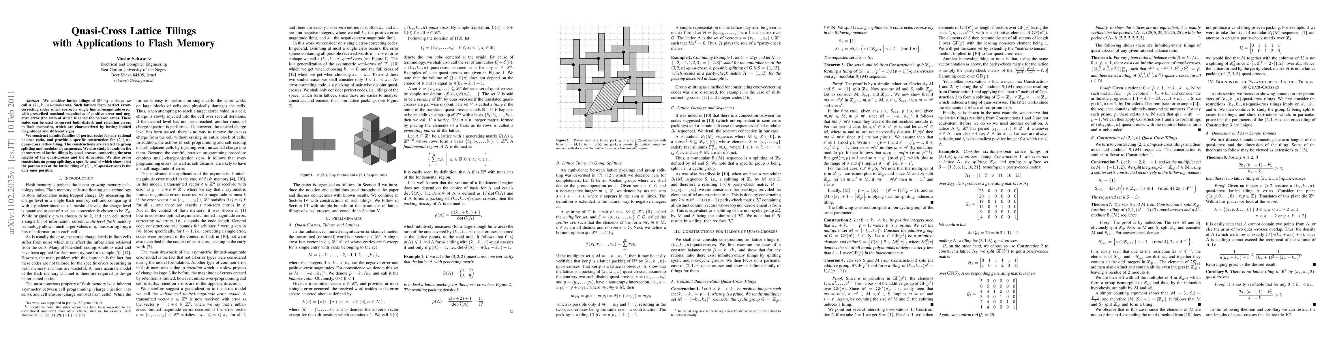 This paper explores $(\kp,\km,n)$-quasi-cross lattice tilings, which form perfect error-correcting codes for flash memory applications. It constructs infinite families of such codes for any rational balance ratio and proves constraints on group splitting, demonstrating the unique parameters for $(2,1,n)$-quasi-cross lattice tilings.
