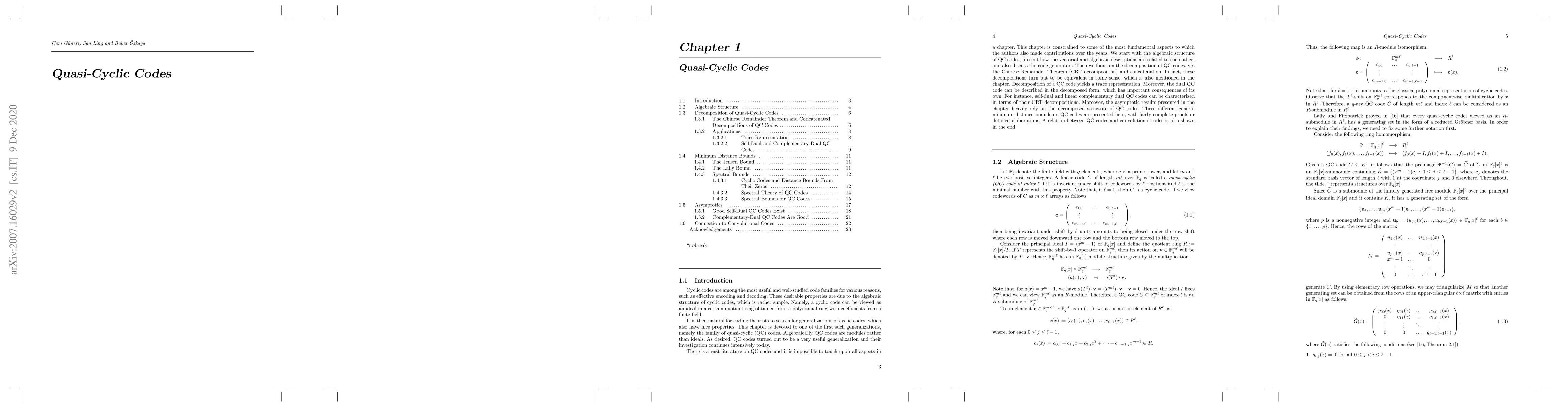 This chapter is significant as it appears in 'A Concise Encyclopedia of Coding Theory' to be published by CRC Press, offering a comprehensive overview of quasi-cyclic codes, which are crucial in coding theory due to their relationship with cyclic codes.