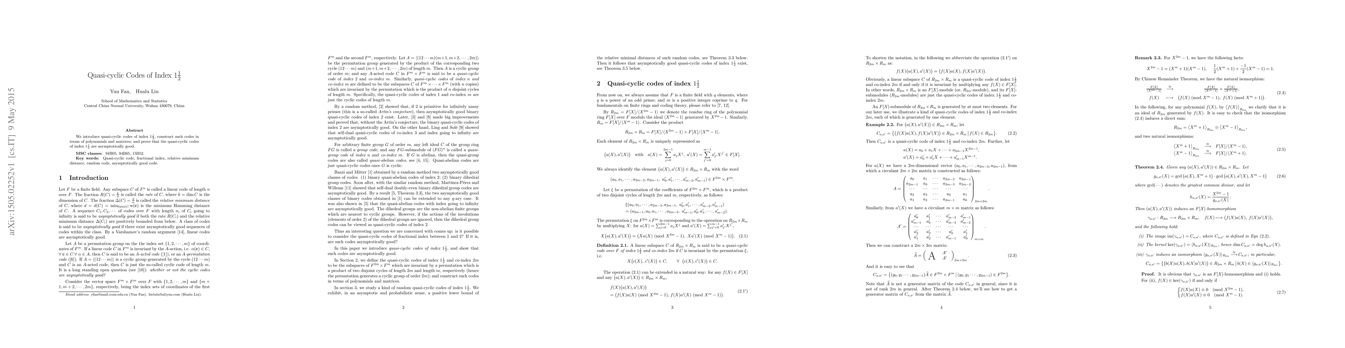 We introduce quasi-cyclic codes of index 1.5, construct such codes in terms of polynomials and matrices; and prove that the quasi-cyclic codes of index 1.5 are asymptotically good.