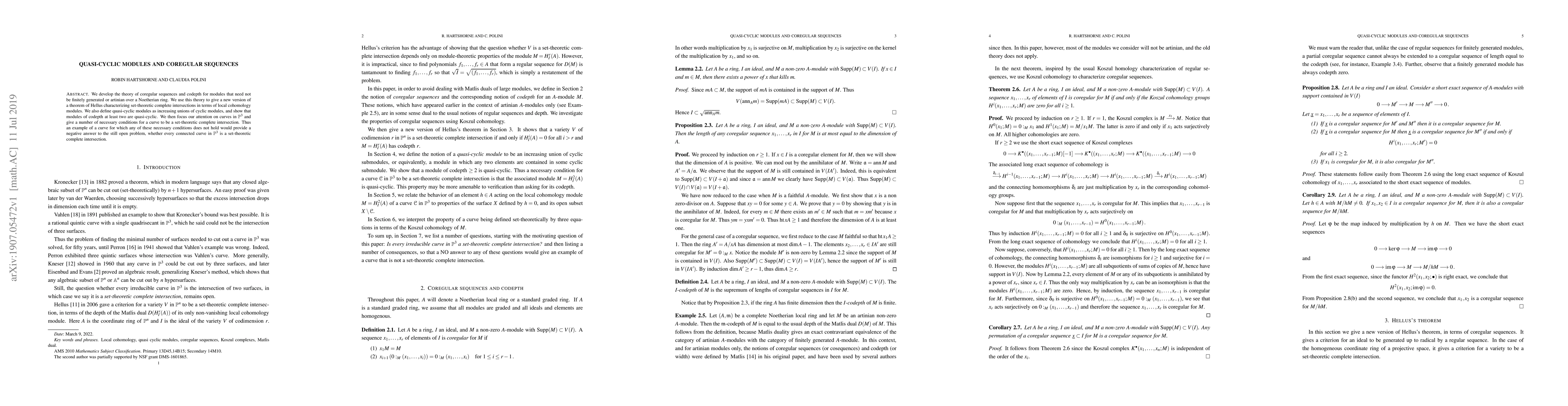 We develop the theory of coregular sequences and codepth for modules that need not be finitely generated or artinian over a Noetherian ring. We use this theory to give a new version of a theorem of Hellus characterizing set-theoretic complete intersections in terms of local cohomology modules. We also define quasi-cyclic modules as increasing unions of cyclic modules, and show that modules of codepth at least two are quasi-cyclic. We then focus our attention on curves in projective three-space and give a number of necessary conditions for a curve to be a set-theoretic complete intersection. Thus an example of a curve for which any of these necessary conditions does not hold would provide a negative answer to the still open problem, whether every connected curve in projective three-space is a set-theoretic complete intersection