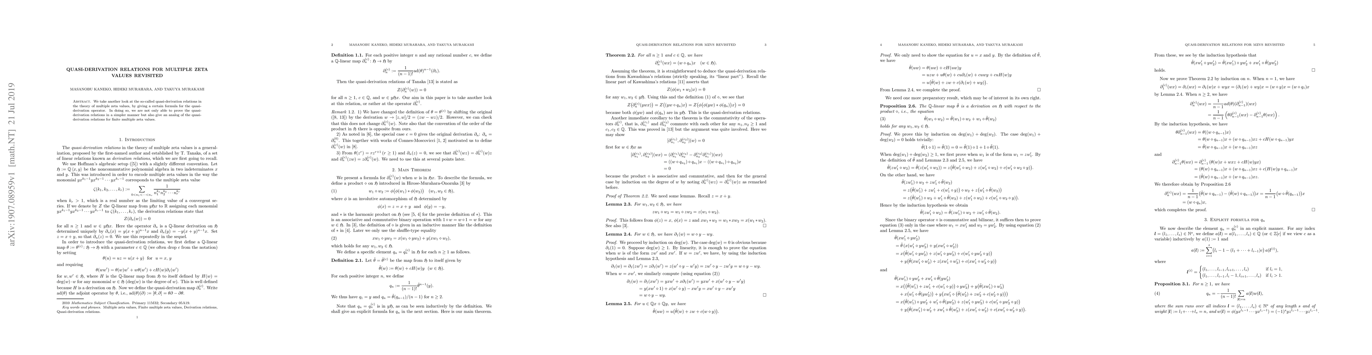 This paper simplifies the proof of quasi-derivation relations in multiple zeta values theory and introduces a new formula for the quasi-derivation operator, extending these relations to finite multiple zeta values.