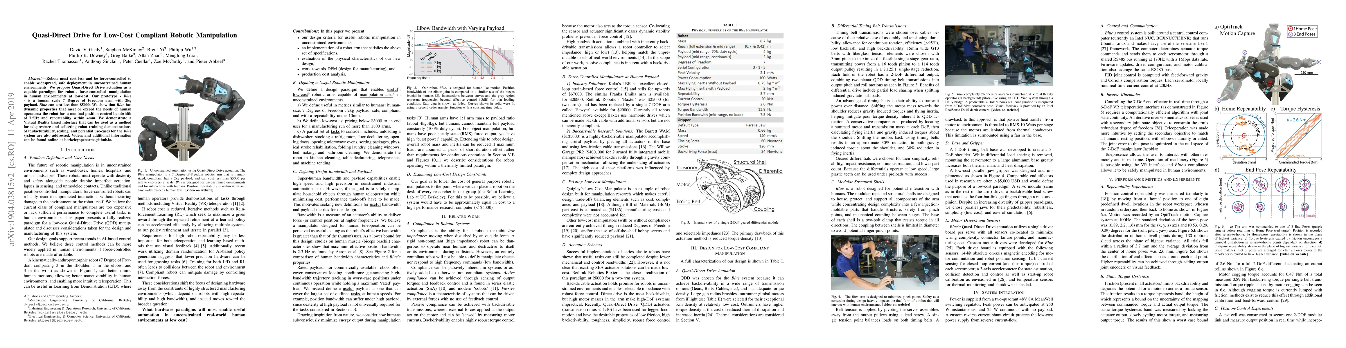 Researchers propose Quasi-Direct Drive as a low-cost solution for force-controlled robotic manipulation in human environments. Their prototype, Blue, has dynamic properties comparable to human operators and can be manufactured for under $5000.