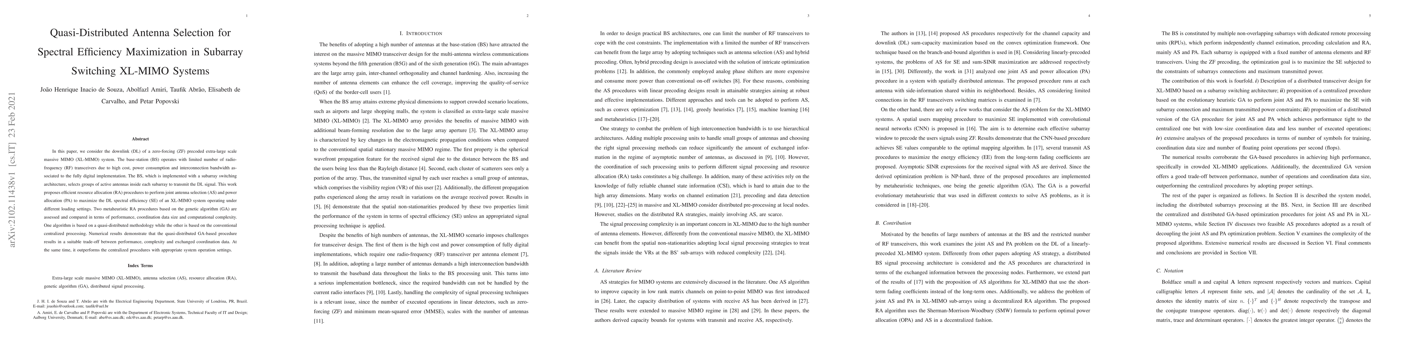 This paper proposes a quasi-distributed antenna selection method to maximize spectral efficiency in XL-MIMO systems with limited RF transceivers, outperforming centralized procedures.