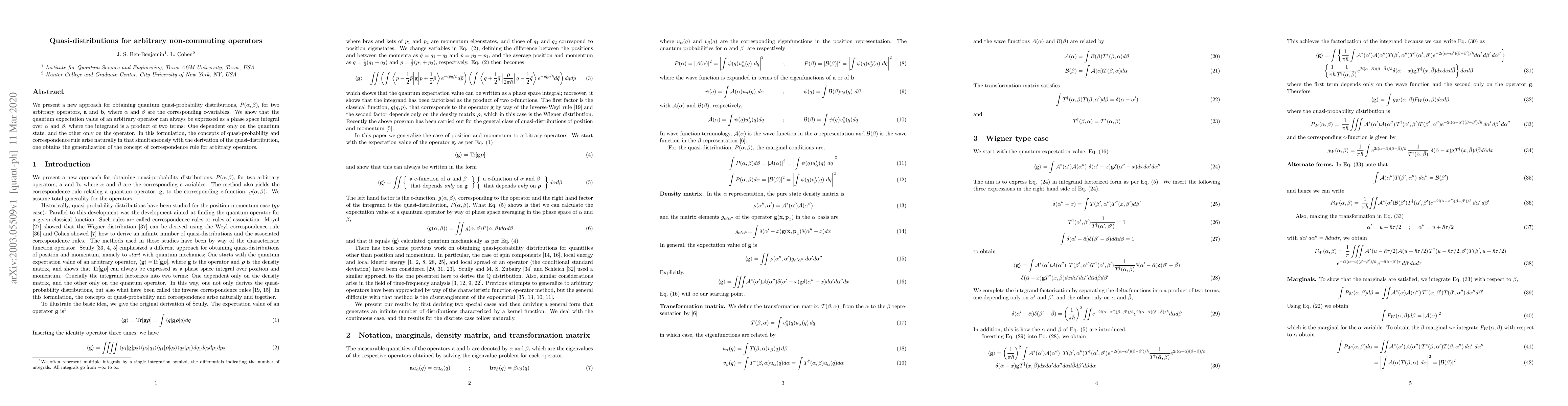 We present a new approach for obtaining quantum quasi-probability distributions, $P(\alpha,\beta)$, for two arbitrary operators, $\mathbf{a}$ and $\mathbf{b}$, where $\alpha$ and $\beta$ are the corresponding c-variables. We show that the quantum expectation value of an arbitrary operator can always be expressed as a phase space integral over $\alpha$ and $\beta$, where the integrand is a product of two terms: One dependent only on the quantum state, and the other only on the operator. In this formulation, the concepts of quasi-probability and correspondence rule arise naturally in that simultaneously with the derivation of the quasi-distribution, one obtains the generalization of the concept of correspondence rule for arbitrary operators.
