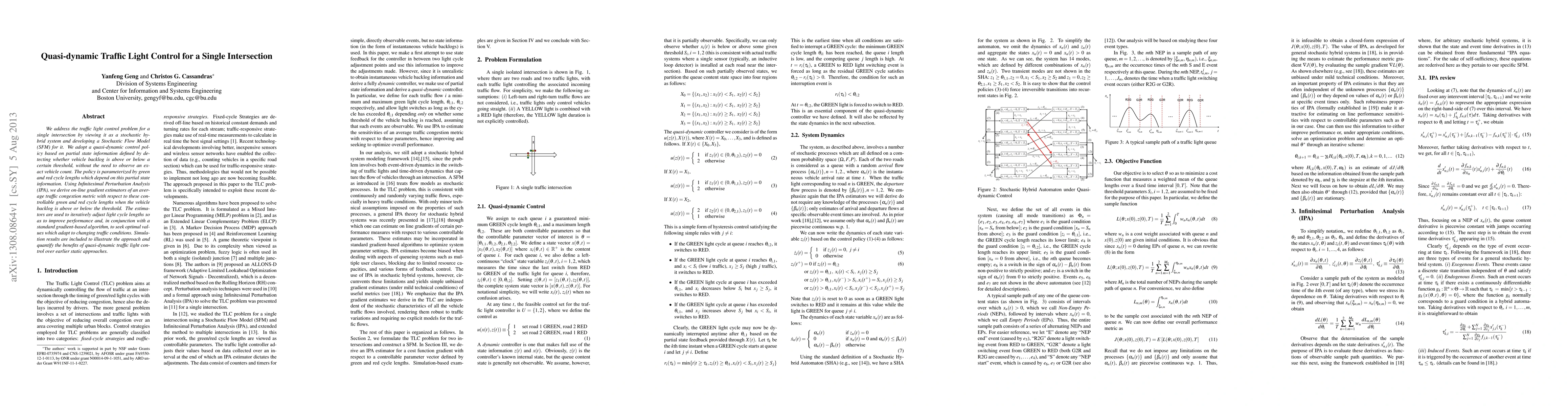 This paper proposes a quasi-dynamic traffic light control policy for a single intersection using a Stochastic Flow Model, adjusting light cycle lengths based on partial vehicle backlog information. Simulation results show improved congestion metrics compared to static control methods.