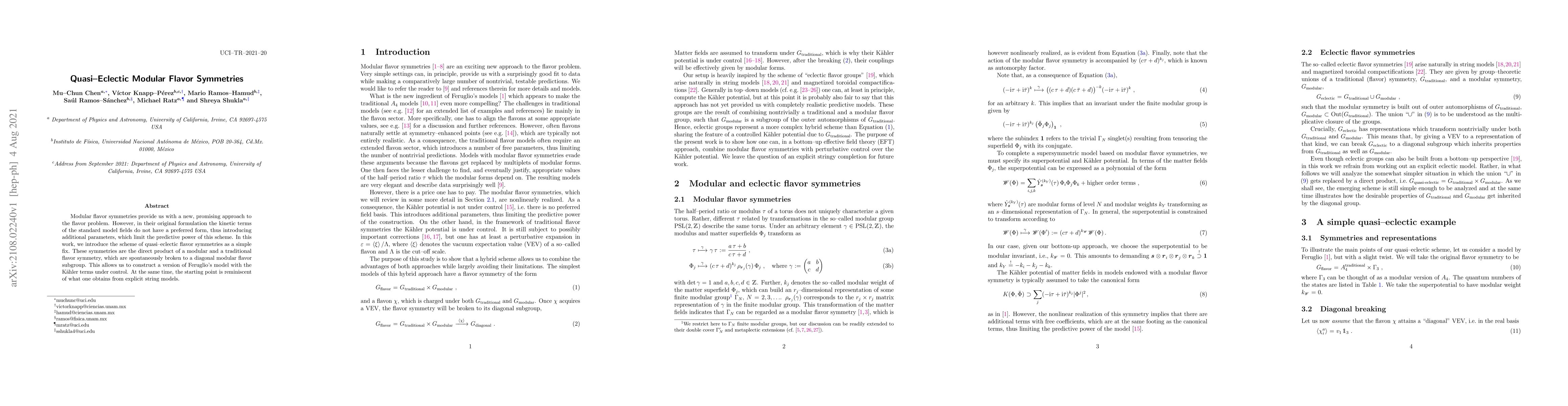 The paper introduces quasi-eclectic modular flavor symmetries, a simple fix to the original modular flavor symmetry scheme by combining a traditional flavor symmetry with modular symmetry, which is then spontaneously broken to a diagonal modular flavor subgroup.