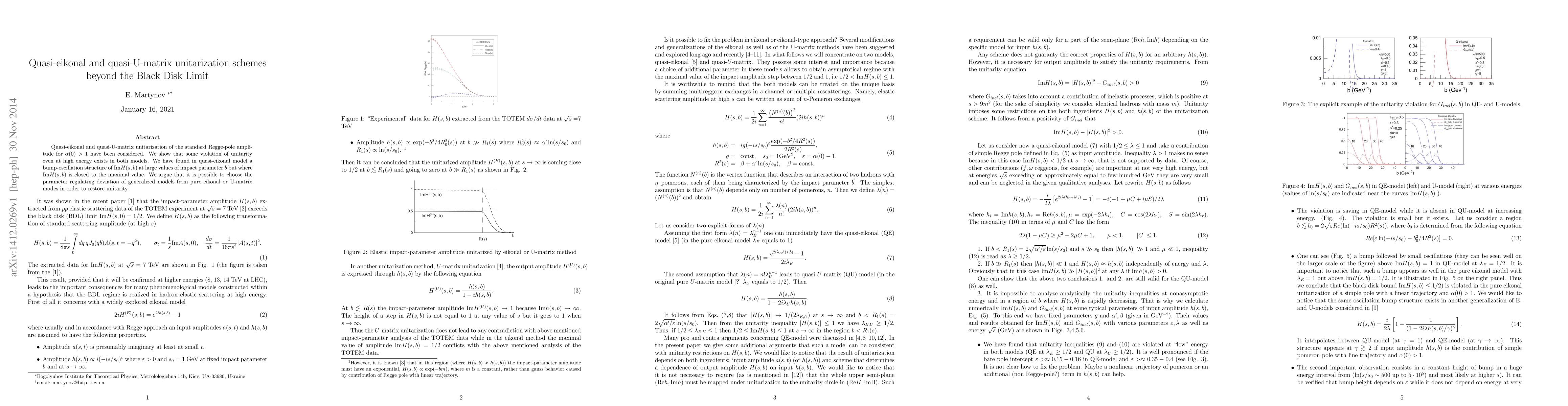 This paper investigates quasi-eikonal and quasi-U-matrix unitarization schemes for Regge-pole amplitudes beyond the black disk limit, revealing persistent unitarity violations even at high energy. It identifies a bump-oscillation structure in the quasi-eikonal model at large impact parameters, suggesting potential parameter adjustments to restore unitarity.