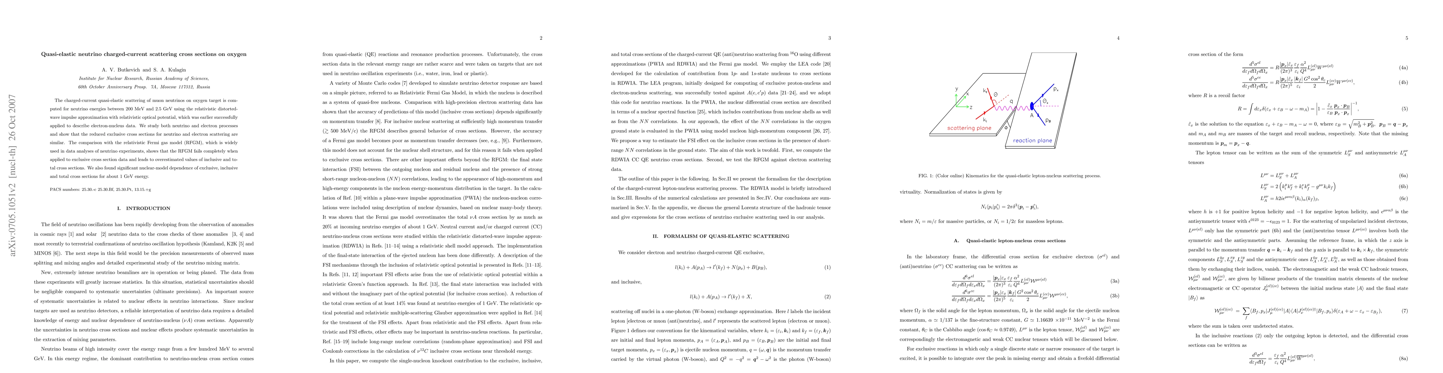 This paper computes quasi-elastic neutrino charged-current scattering cross sections on oxygen for neutrino energies between 200 MeV and 2.5 GeV, showing that the relativistic distorted-wave impulse approximation provides a better fit than the relativistic Fermi gas model, which overestimates cross sections. The study highlights significant nuclear-model dependence for energies around 1 GeV.