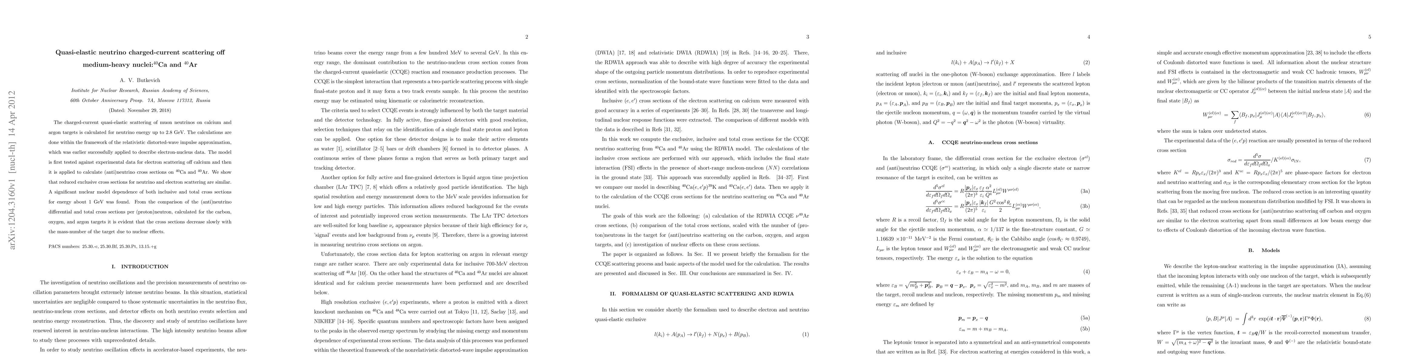 The charged-current quasi-elastic scattering of muon neutrinos on calcium and argon targets is calculated for neutrino energy up to 2.8 GeV. The calculations are done within the framework of the relativistic distorted-wave impulse approximation, which was earlier successfully applied to describe electron-nucleus data. The model is first tested against experimental data for electron scattering off calcium and then it is applied to calculate (anti)neutrino cross sections on 40Ca and 40Ar. We show that reduced exclusive cross sections for neutrino and electron scattering are similar. A significant nuclear model dependence of both inclusive and total cross sections for energy about 1 GeV was found. From the comparison of the (anti)neutrino differential and total cross sections per (proton)neutron, calculated for the carbon, oxygen, and argon targets it is evident that the cross sections decrease slowly with the mass-number of the target due to nuclear effects.