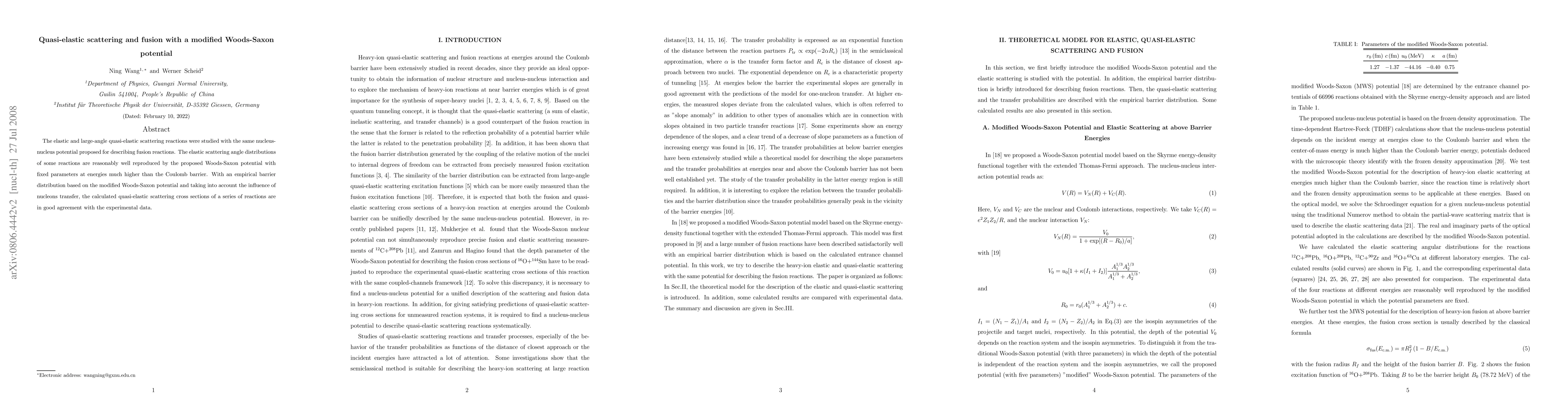 This paper studies quasi-elastic scattering and fusion reactions using a modified Woods-Saxon potential, successfully reproducing elastic scattering angles and quasi-elastic scattering cross sections at high energies, validating the potential's empirical barrier distribution and nucleon transfer effects.