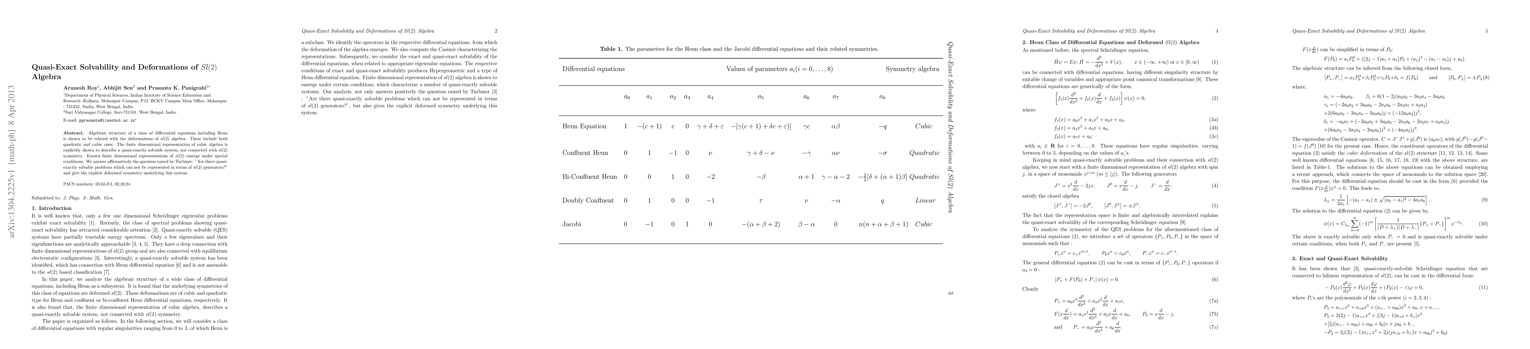 This paper explores the relationship between the algebraic structure of certain differential equations, including Heun equations, and deformations of the sl(2) algebra, demonstrating that these deformations can lead to quasi-exactly solvable systems. It reveals that some of these systems cannot be represented using sl(2) symmetry, answering Turbiner's question affirmatively and identifying the explicit deformed symmetry in such cases.