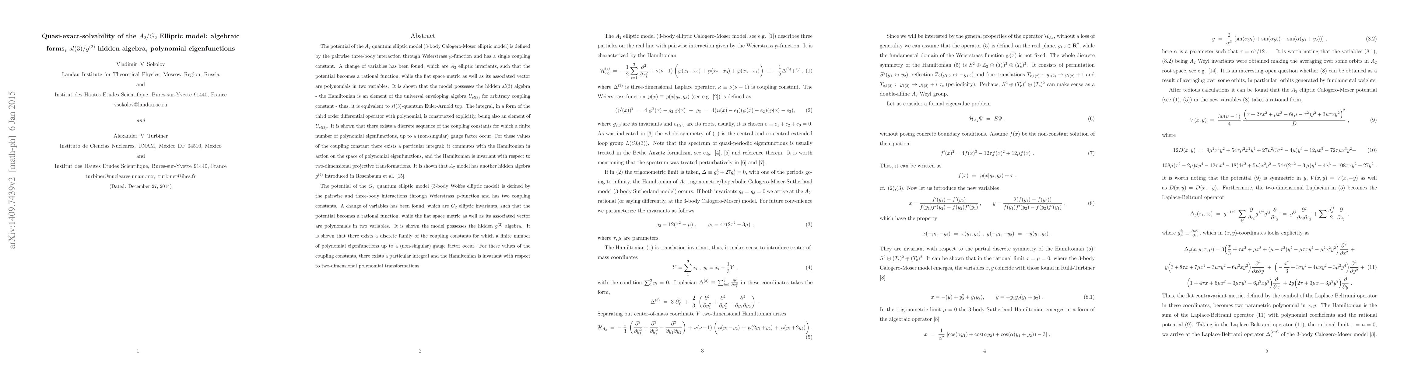 Researchers found that two quantum elliptic models possess hidden algebras, enabling the construction of polynomial eigenfunctions and rational potentials, with implications for understanding quantum many-body systems.