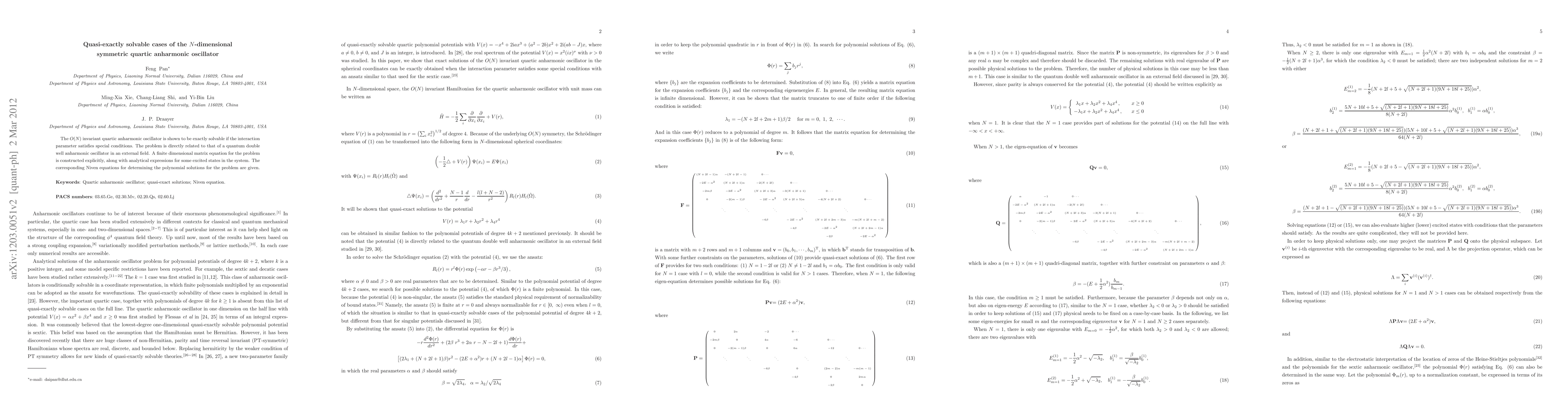 This paper demonstrates the exact solvability of the N-dimensional symmetric quartic anharmonic oscillator under specific interaction parameters, constructing a finite-dimensional matrix equation and providing analytical expressions for some excited states, alongside Niven equations for polynomial solutions.