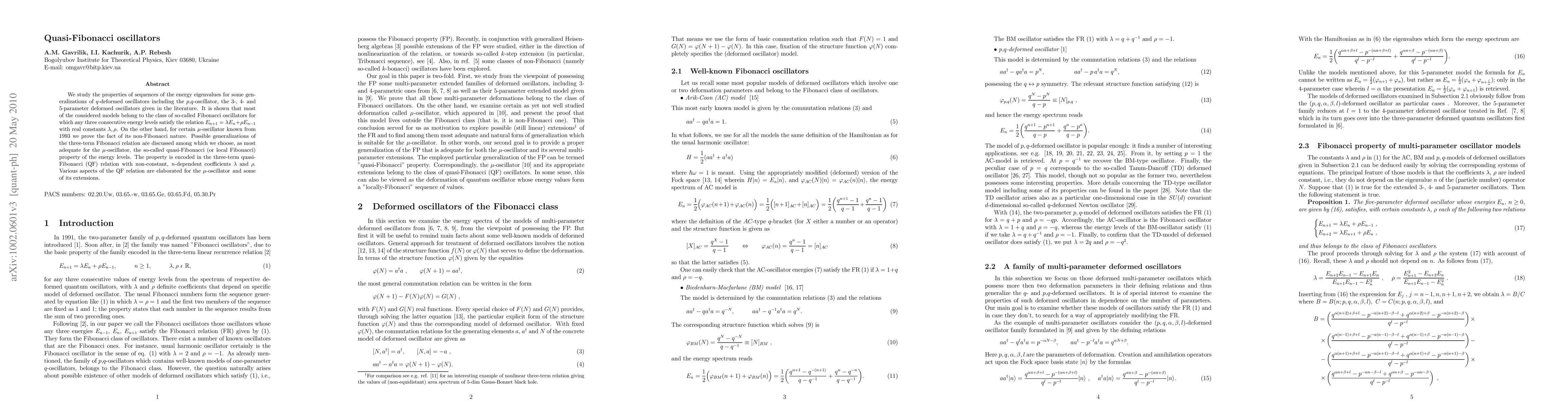 We study the properties of sequences of the energy eigenvalues for some generalizations of q-deformed oscillators including the p,q-oscillator, the 3-, 4- and 5-parameter deformed oscillators given in the literature. It is shown that most of the considered models belong to the class of so-called Fibonacci oscillators for which any three consequtive energy levels satisfy the relation E_{n+1}=\lambda E_n+\rho E_{n-1} with real constants \lambda, \rho. On the other hand, for certain \mu-oscillator known from 1993 we prove the fact of its non-Fibonacci nature. Possible generalizations of the three-term Fibonacci relation are discussed among which we choose, as most adequate for the \mu$-oscillator, the so-called quasi-Fibonacci (or local Fibonacci) property of the energy levels. The property is encoded in the three-term quasi-Fibonacci (QF) relation with non-constant, n-dependent coefficients \lambda and \rho. Various aspects of the QF relation are elaborated for the \mu-oscillator and some of its extensions.
