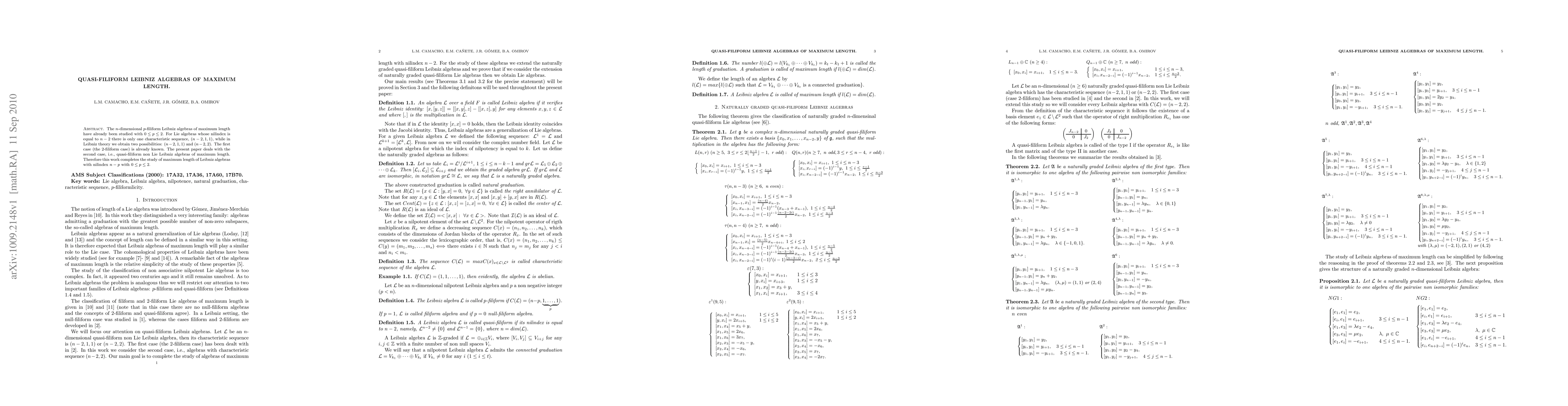 The $n$-dimensional $p$-filiform Leibniz algebras of maximum length have already been studied with $0\leq p\leq 2$. For Lie algebras whose nilindex is equal to $n-2$ there is only one characteristic sequence, $(n-2,1,1)$, while in Leibniz theory we obtain two possibilities: $(n-2,1,1)$ and $(n-2,2)$. The first case (the 2-filiform case) is already known. The present paper deals with the second case, i.e., quasi-filiform non Lie Leibniz algebras of maximum length. Therefore this work completes the study of maximum length of Leibniz algebras with nilindex $n-p$ with $0 \leq p \leq 2$.
