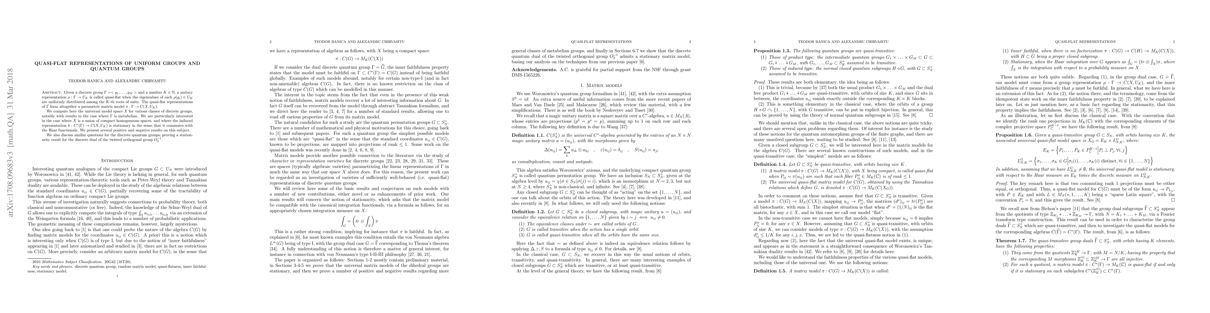 N$, a unitary representation $\rho:\Gamma\to U_K$ is called quasi-flat when the