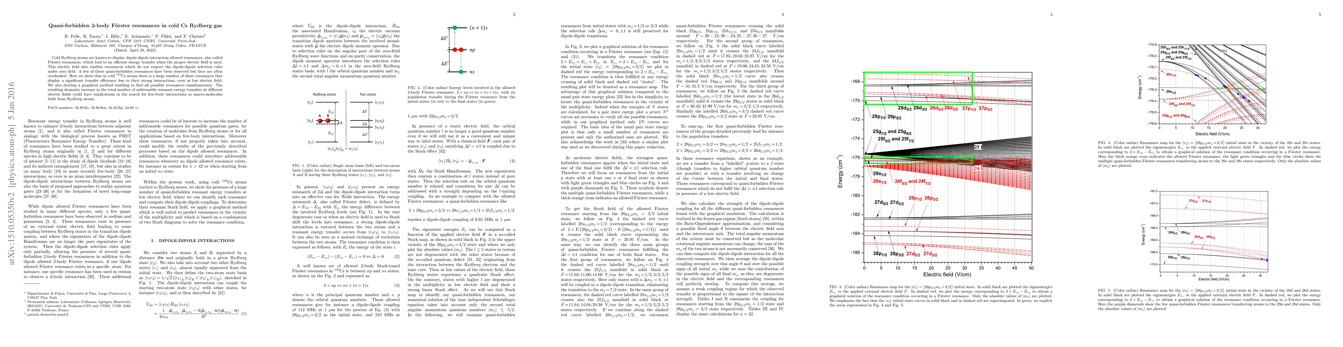 Cold Rydberg atoms are known to display dipole-dipole interaction allowed resonances, also called F\"orster resonances, which lead to an efficient energy transfer when the proper electric field is used. This electric field also enables resonances which do not respect the dipole-dipole selection rules under zero field. A few of these quasi-forbidden resonances have been observed but they are often overlooked. Here we show that in cold $^{133}$Cs atoms there is a large number of these resonances that display a significant transfer efficiency due to their strong interactions, even at low electric field. We also develop a graphical method enabling to find all possible resonances simultaneously. The resulting dramatic increase in the total number of addressable resonant energy transfers at different electric fields could have implications in the search for few-body interactions or macro-molecules built from Rydberg atoms.