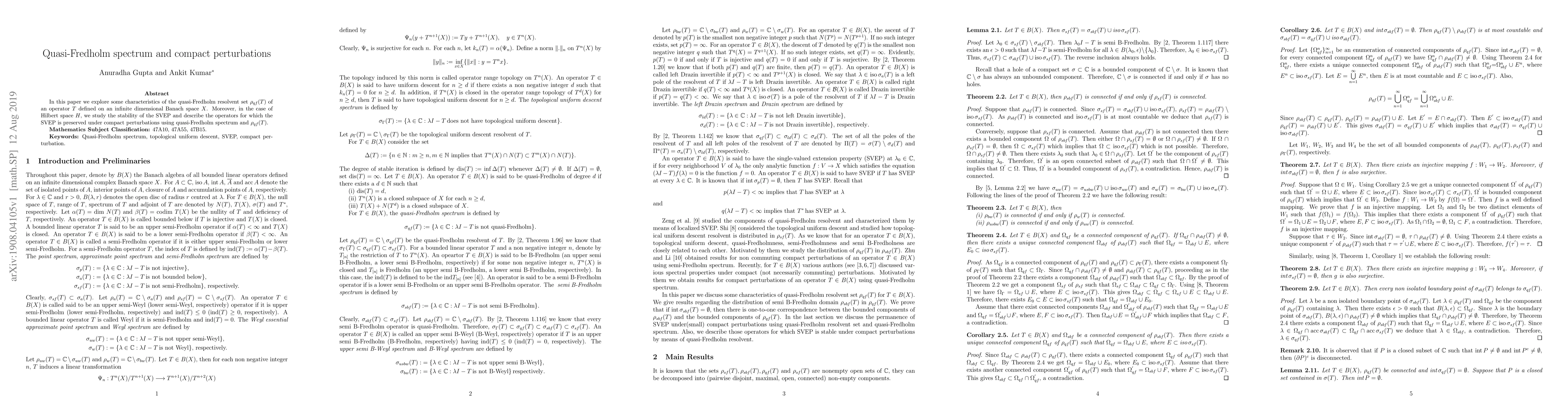 This paper investigates the quasi-Fredholm resolvent set $\rho_{qf}(T)$ of operators on infinite-dimensional Banach spaces and examines the stability of the SVEP in Hilbert spaces, focusing on how compact perturbations affect operators using the quasi-Fredholm spectrum.