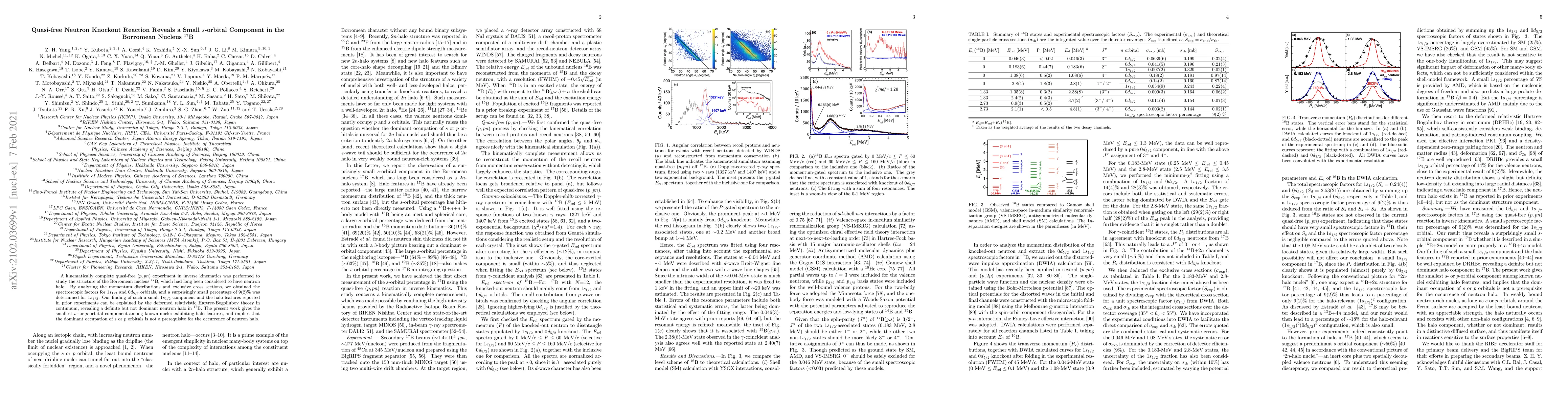 The study uses a quasi-free neutron knockout reaction to reveal a small $1s_{1/2}$ neutron component in the Borromean nucleus $^{17}$B, challenging the notion of neutron halo requiring dominant $s$ or $p$-orbital occupation. The findings support a deformed relativistic Hartree-Bogoliubov theory in continuum, suggesting the smallest $s$- or $p$-orbital component among halo nuclei known so far.
