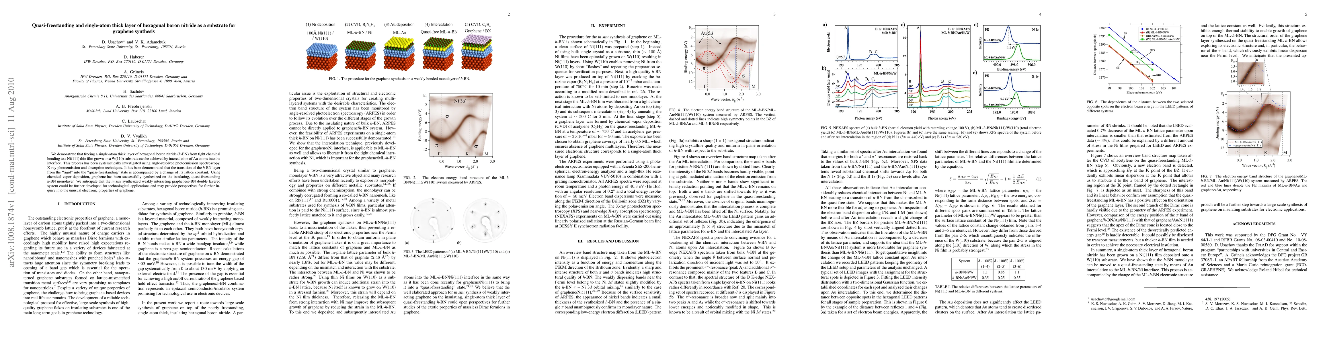 This paper demonstrates the successful intercalation of Au atoms to free a single-atom thick hexagonal boron nitride layer from a Ni(111) substrate, transforming it into a quasi-freestanding state. Graphene is then synthesized on this insulating hBN monolayer, potentially paving the way for technological applications and exploration of graphene's unique electronic properties.