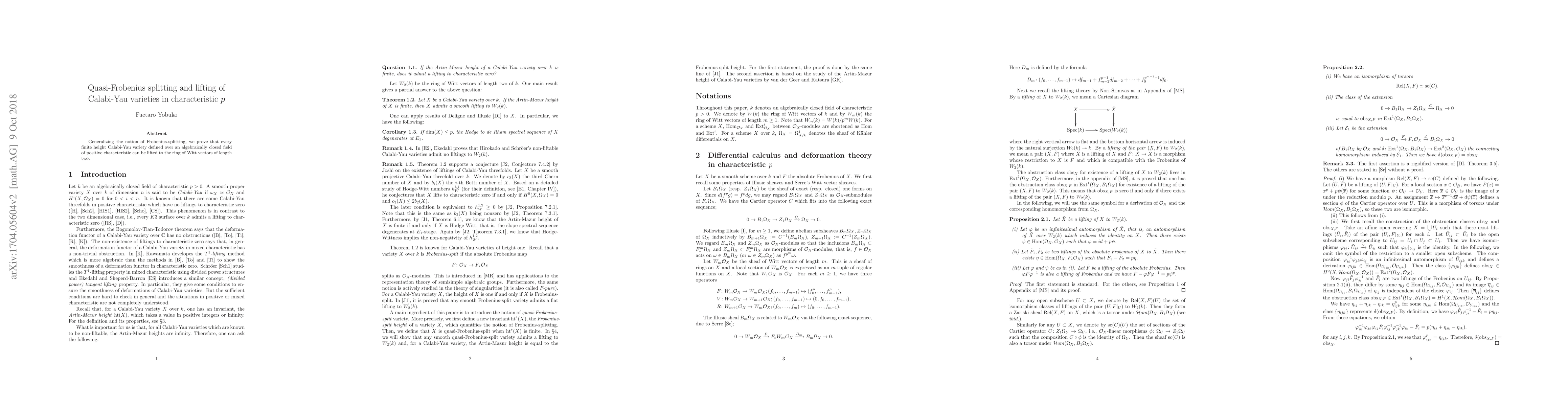 Summary: This paper extends the concept of Frobenius-splitting to show that any finite height Calabi-Yau variety over a field of positive characteristic can be lifted to the ring of Witt vectors of length two, providing a new method for studying these varieties in characteristic $p$.