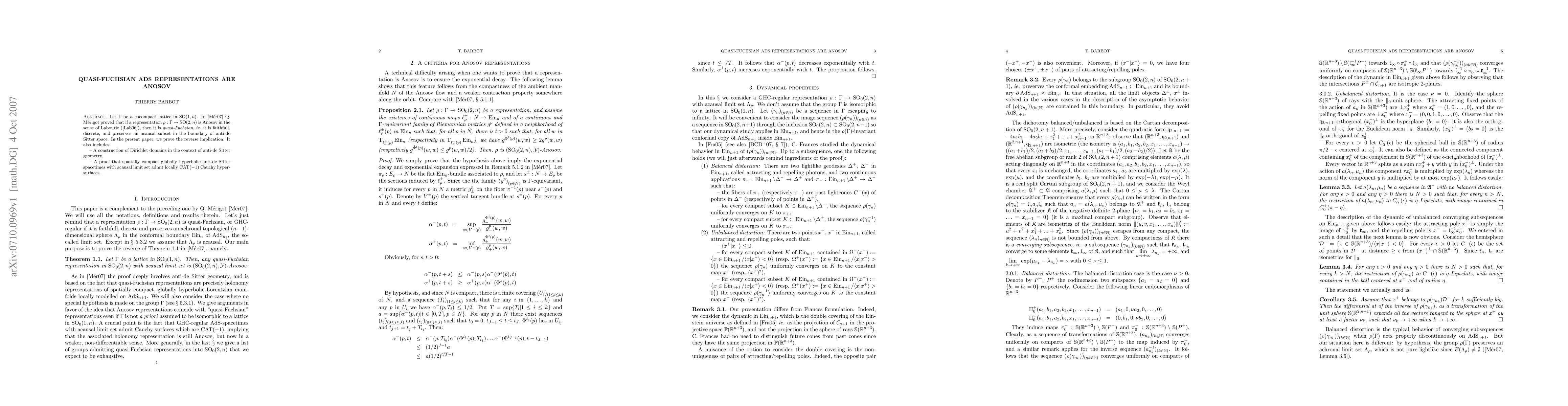 This paper proves that quasi-Fuchsian AdS representations in SO(2,n) are Anosov, completing the result of Q. Mérigot. It also constructs Dirichlet domains in AdS geometry and demonstrates that certain spacetimes have locally CAT(-1) Cauchy hypersurfaces.