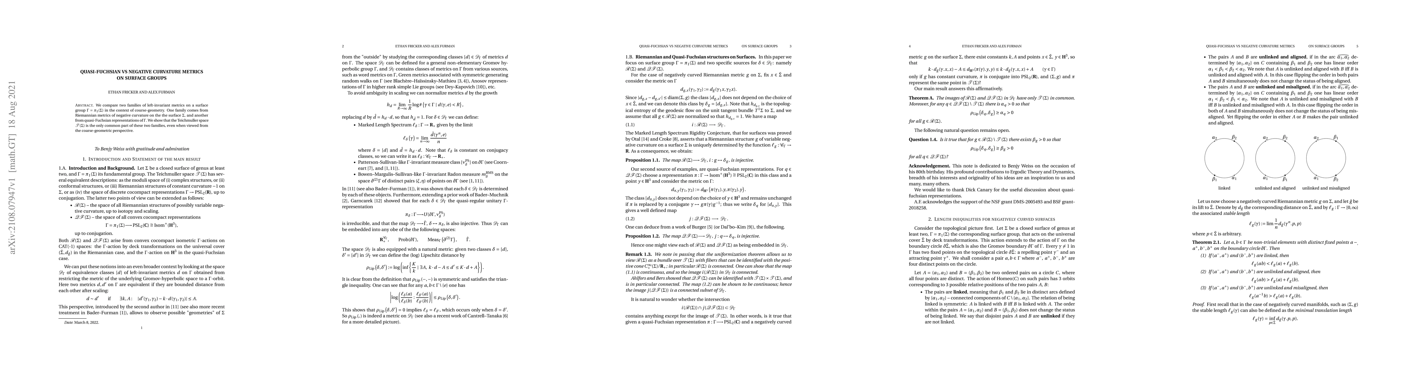 This paper compares left-invariant metrics on a surface group derived from negative curvature Riemannian metrics and quasi-Fuchsian representations, demonstrating that Teichmüller space is the sole common ground between these two families, even when analyzed through coarse geometry.