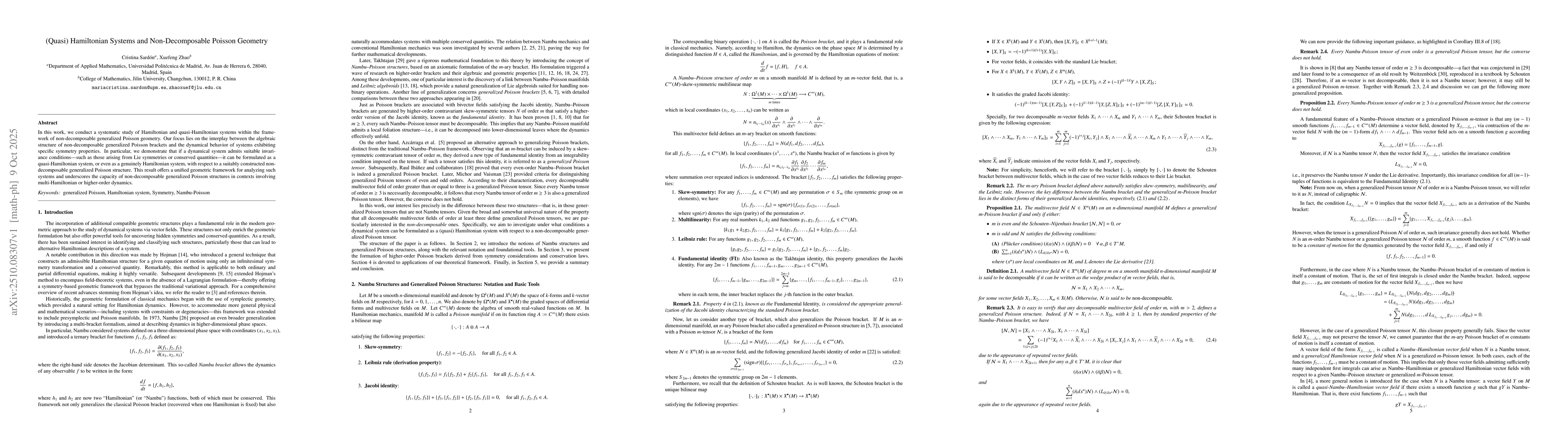 The research employs a geometric framework combining generalized higher-order Poisson tensors to unify Hamiltonian, quasi-Hamiltonian, and Nambu-Poisson formulations. It leverages commuting symmetries and conserved quantities to construct non-decomposable generalized Poisson tensors for dynamical systems.