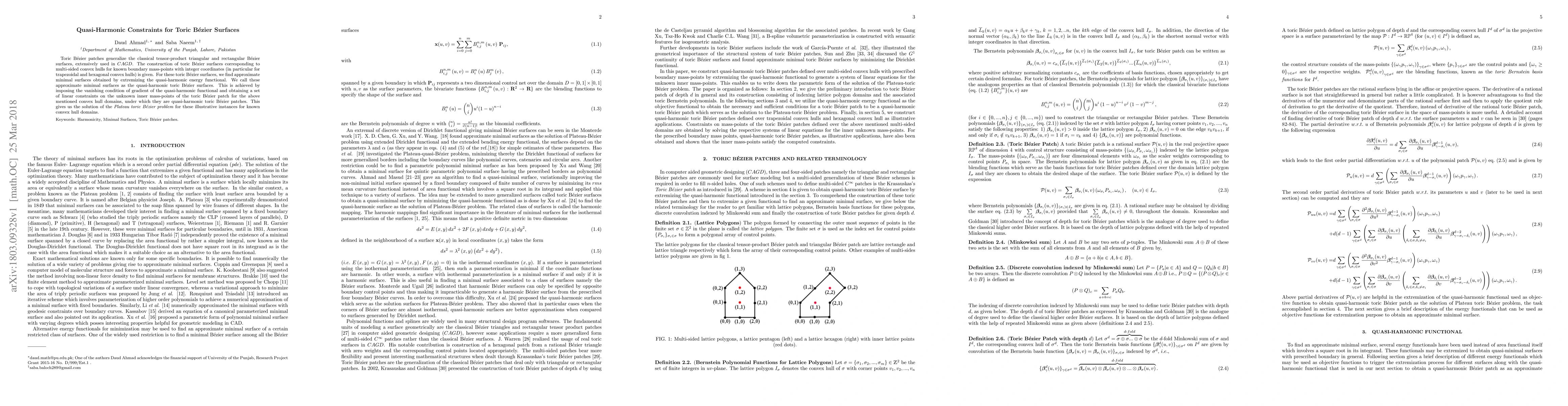 This paper presents a method for constructing toric Bézier surfaces corresponding to multi-sided convex hulls, specifically trapezoidal and hexagonal, and finds approximate minimal surfaces by extremizing the quasi-harmonic energy functional, termed quasi-harmonic toric Bézier surfaces, through linear constraints on inner mass-points. This resolves the Plateau toric Bézier problem for these convex hull domains.