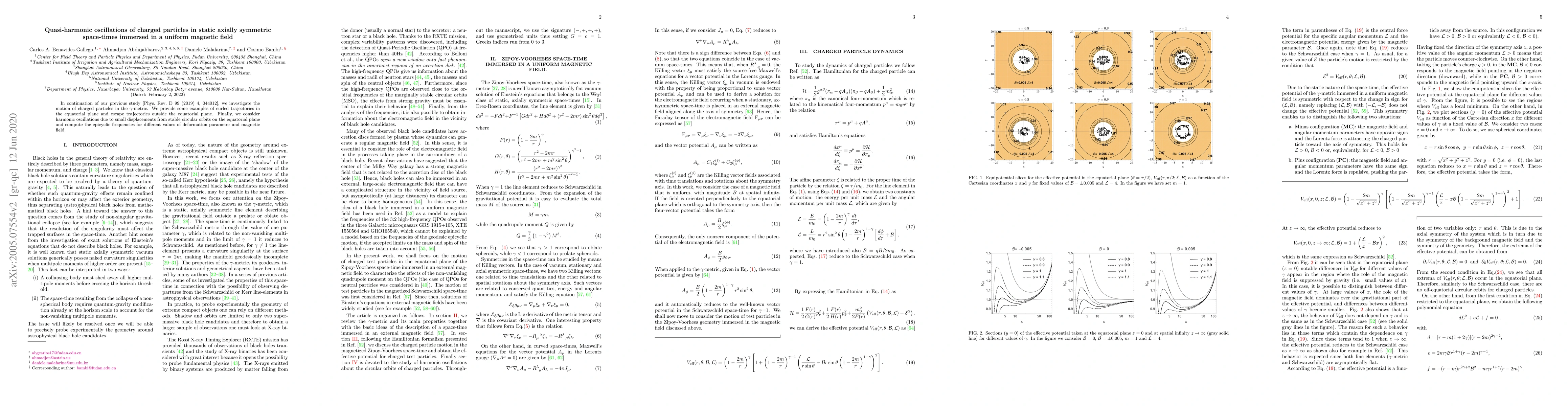 In continuation of our previous study [Phys. Rev. D 99 (2019) 4, 044012], we investigate the motion of charged particles in the $\gamma$-metric. We provide some examples of curled trajectories in the equatorial plane and escape trajectories outside the equatorial plane. Finally, we consider harmonic oscillations due to small displacements from stable circular orbits on the equatorial plane and compute the epicyclic frequencies for different values of deformation parameter and magnetic field.