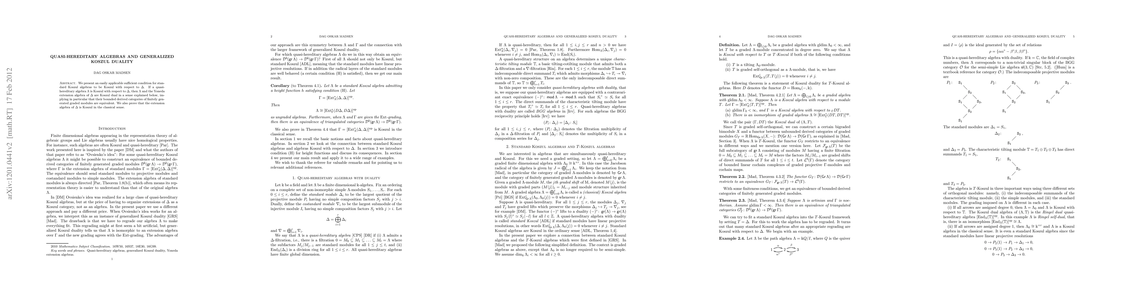 This paper establishes a condition for quasi-hereditary algebras to be Koszul relative to $\Delta$, demonstrating that such algebras and their Yoneda extension algebras are Koszul duals, with equivalence of their bounded derived categories, and proving the classical Koszulness of the extension algebra.