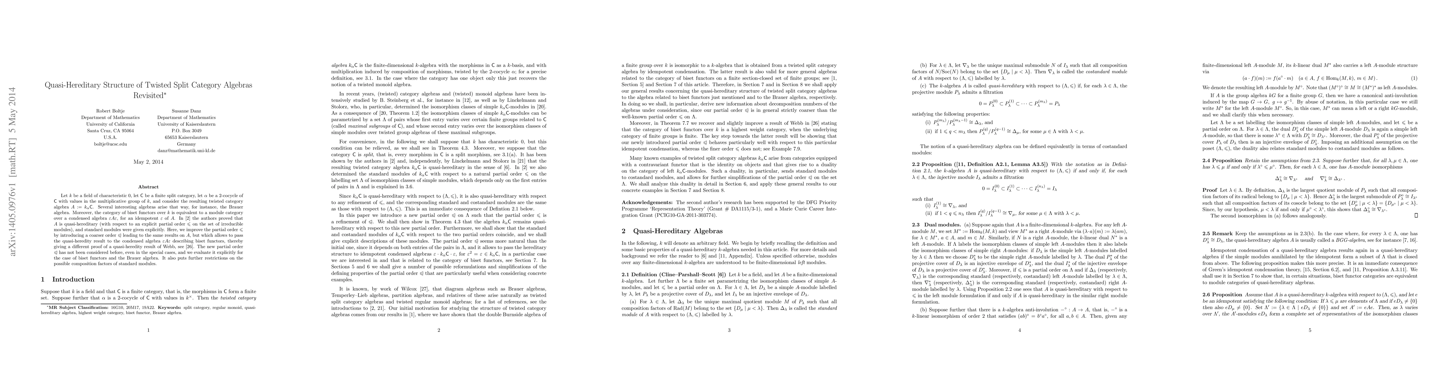 This research paper improves the quasi-hereditary structure of twisted split category algebras, introducing a coarser partial order that simplifies results and applies to biset functors and the Brauer algebra. It also provides new restrictions on the composition factors of standard modules.