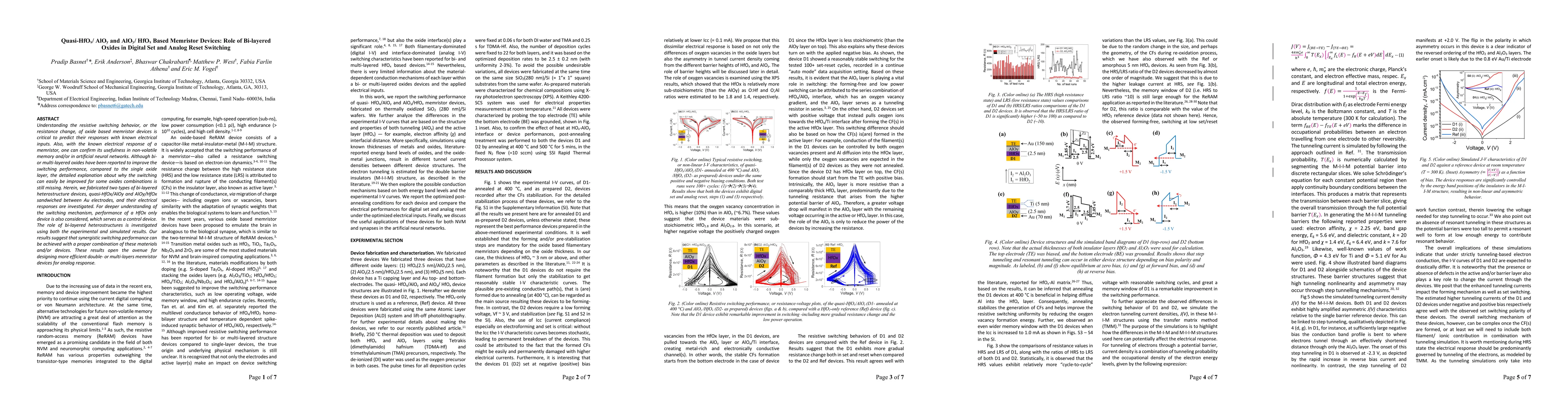 Understanding the resistive switching behavior, or the resistance change, of oxide-based memristor devices, is critical to predicting their responses with known electrical inputs. Also, with the known electrical response of a memristor, one can confirm its usefulness in non-volatile memory and/or in artificial neural networks. Although bi- or multi-layered oxides have been reported to improve the switching performance, compared to the single oxide layer, the detailed explanation about why the switching can easily be improved for some oxides combinations is still missing. Herein, we fabricated two types of bi-layered heterostructure devices, quasi-HfO$_x$/AlO$_y$ and AlO$_y$/HfO$_x$ sandwiched between Au electrodes, and their electrical responses are investigated. For a deeper understanding of the switching mechanism, the performance of a HfOx only device is also considered, which serves as a control device. The role of bi-layered heterostructures is investigated using both the experimental and simulated results. Our results suggest that synergistic switching performance can be achieved with a proper combination of these materials and/or devices. These results open the avenue for designing more efficient double- or multi-layers memristor devices for an analog response.