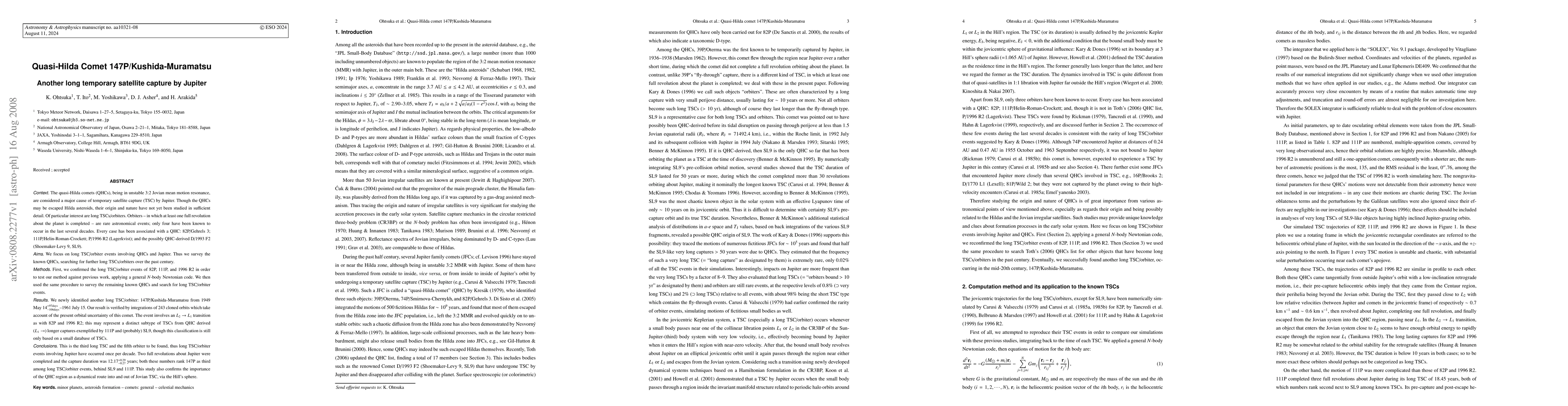The quasi-Hilda comets (QHCs), being in unstable 3:2 Jovian mean motion resonance, are considered a major cause of temporary satellite capture (TSC) by Jupiter. Though the QHCs may be escaped Hilda asteroids, their origin and nature have not yet been studied in sufficient detail. Of particular interest are long TSCs/orbiters. Orbiters -- in which at least one full revolution about the planet is completed -- are rare astronomical events; only four have been known to occur in the last several decades. Every case has been associated with a QHC: 82P/Gehrels 3; 111P/Helin-Roman-Crockett; P/1996 R2 (Lagerkvist); and the possibly QHC-derived D/1993 F2 (Shoemaker-Levy 9, SL9). We focus on long TSC/orbiter events involving QHCs and Jupiter. Thus we survey the known QHCs, searching for further long TSCs/orbiters over the past century. First, we confirmed the long TSC/orbiter events of 82P, 111P, and 1996 R2 in order to test our method against previous work, applying a general N-body Newtonian code. We then used the same procedure to survey the remaining known QHCs and search for long TSC/orbiter events. We newly identified another long TSC/orbiter: 147P/Kushida-Muramatsu from 1949 May 14 (+97days/-106 days)--1961 July 15. Our result is verified by integrations of 243 cloned orbits which take account of the present orbital uncertainty of this comet. This is the third long TSC and the fifth orbiter to be found, thus long TSC/orbiter events involving Jupiter have occurred once per decade. Two full revolutions about Jupiter were completed and the capture duration was 12.17 (+0.29/-0.27) years; both these numbers rank 147P as third among long TSC/orbiter events, behind SL9 and 111P. This study also confirms the importance of the QHC region as a dynamical route into and out of Jovian TSC, via the Hill's sphere.
