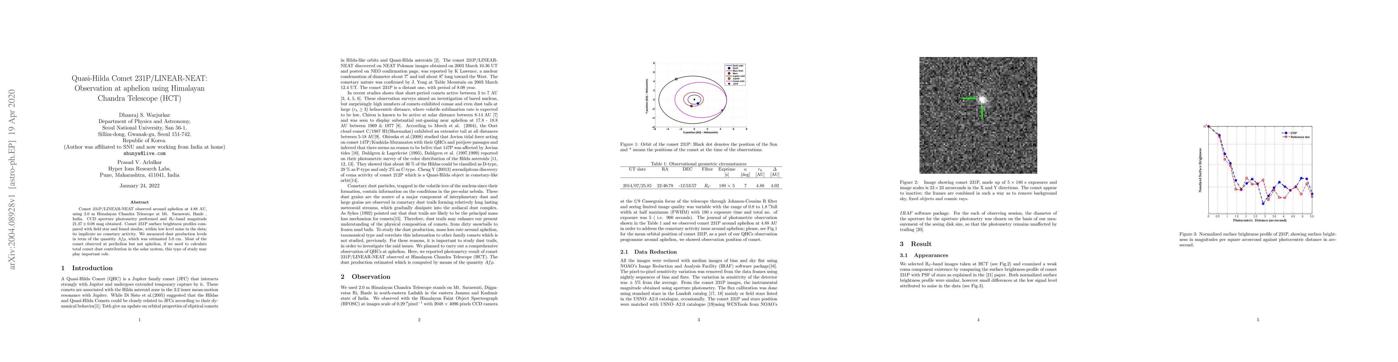 Comet 231P/LINEAR-NEAT observed around aphelion at 4.88 AU, using 2.0 m Himalayan Chandra Telescope at Mt. Saraswati, Hanle , India. CCD aperture photometry performed and $R_{C}$-band magnitude $21.37\pm 0.08 $ mag obtained. Comet 231P surface brightness profiles compared with field star and found similar, within low level noise in the data; its implicate no cometary activity. We measured dust production levels in term of the quantity $Af\rho$, which was estimated 5.0 cm. Most of the comet observed at perihelion but not aphelion, if we need to calculate total comet dust contribution in the solar system, this type of study may play important role.