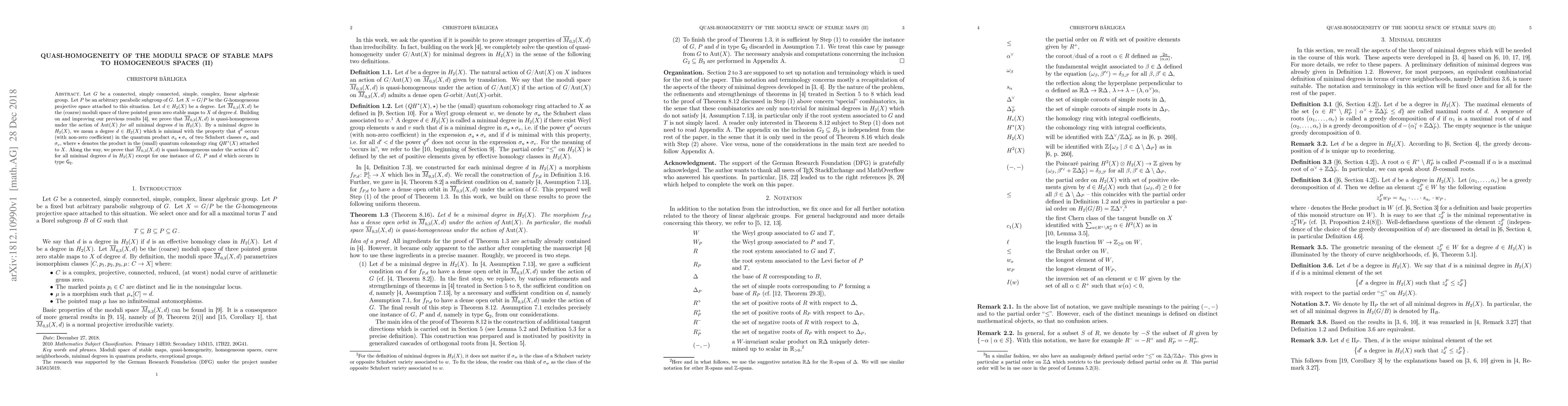 Let $G$ be a connected, simply connected, simple, complex, linear algebraic group. Let $P$ be an arbitrary parabolic subgroup of $G$. Let $X=G/P$ be the $G$-homogeneous projective space attached to this situation. Let $d\in H_2(X)$ be a degree. Let $\overline{M}_{0,3}(X,d)$ be the (coarse) moduli space of three pointed genus zero stable maps to $X$ of degree $d$. Building on and improving our previous results [Christoph B\"arligea, Quasi-Homogeneity of the Moduli Space of Stable Maps to Homogeneous Spaces, Doc. Math. 23, 697-745 (2018), DOI: 10.25537/dm.2018v23.697-745], we prove that $\overline{M}_{0,3}(X,d)$ is quasi-homogeneous under the action of $\operatorname{Aut}(X)$ for all minimal degrees $d$ in $H_2(X)$. By a minimal degree in $H_2(X)$, we mean a degree $d\in H_2(X)$ which is minimal with the property that $q^d$ occurs (with non-zero coefficient) in the quantum product $\sigma_u\star\sigma_v$ of two Schubert classes $\sigma_u$ and $\sigma_v$, where $\star$ denotes the product in the (small) quantum cohomology ring $\mathit{QH}^*(X)$ attached to $X$. Along the way, we prove that $\overline{M}_{0,3}(X,d)$ is quasi-homogeneous under the action of $G$ for all minimal degrees $d$ in $H_2(X)$ except for one instance of $G$, $P$ and $d$ which occurs in type $\mathsf{G}_2$.