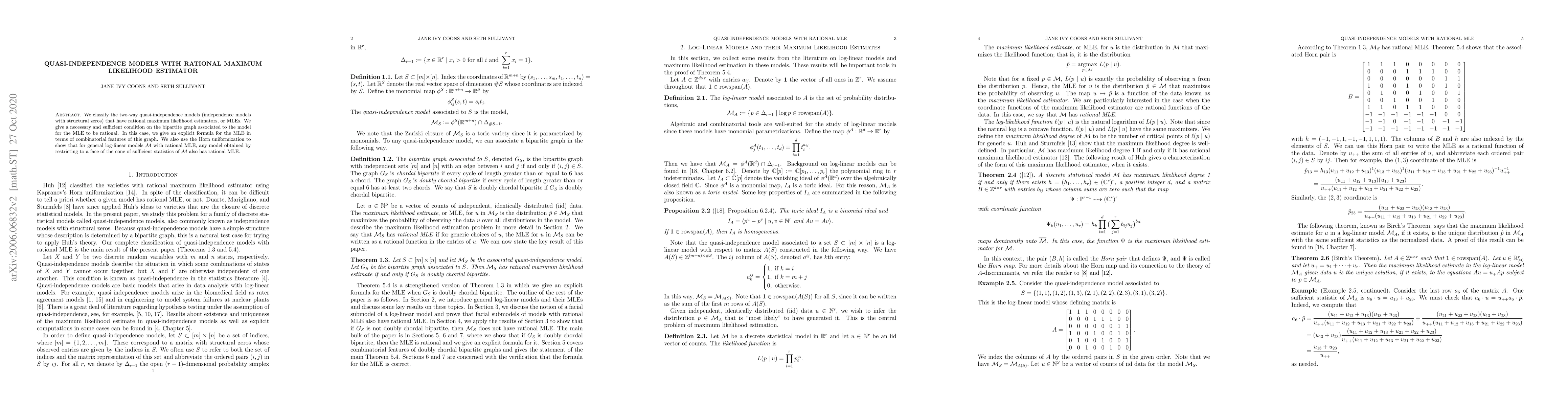 This paper classifies two-way quasi-independence models with rational maximum likelihood estimators, providing a necessary and sufficient condition on the associated bipartite graph for the MLE to be rational. It also offers an explicit formula for the MLE based on combinatorial features of the graph and demonstrates that rational MLEs extend to restricted log-linear models.