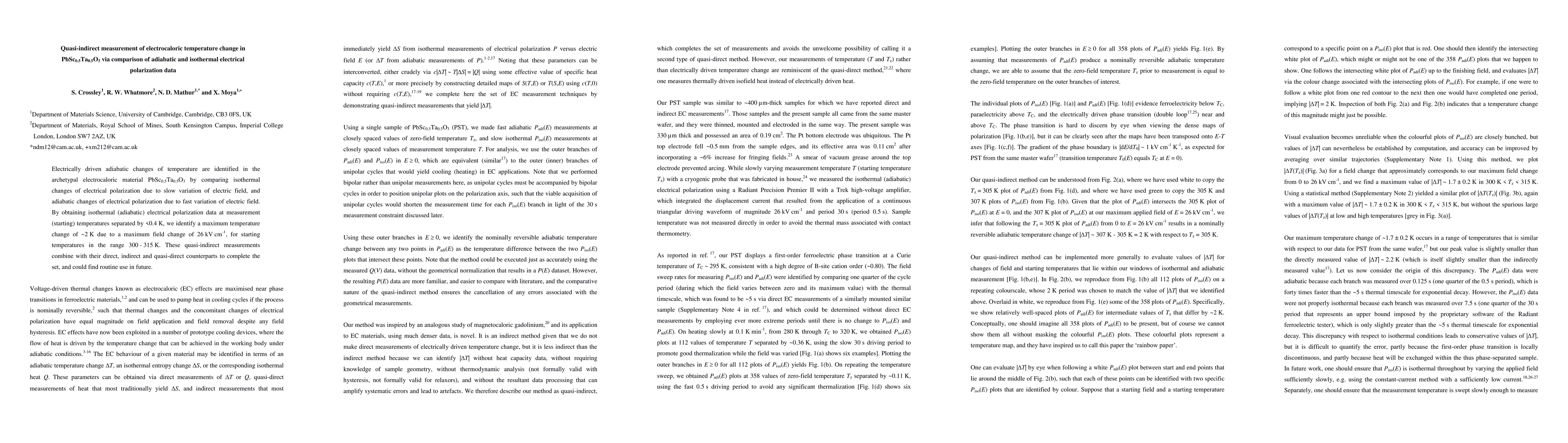 Electrically driven adiabatic changes of temperature are identified in the archetypal electrocaloric material PbSc0.5Ta0.5O3 by comparing isothermal changes of electrical polarization due to slow variation of electric field, and adiabatic changes of electrical polarization due to fast variation of electric field. By obtaining isothermal (adiabatic) electrical polarization data at measurement (starting) temperatures separated by <0.4 K, we identify a maximum temperature change of ~2 K due to a maximum field change of 26 kV cm-1, for starting temperatures in the range 300 - 315 K. These quasi indirect measurements combine with their direct, indirect and quasi-direct counterparts to complete the set, and could find routine use in future.